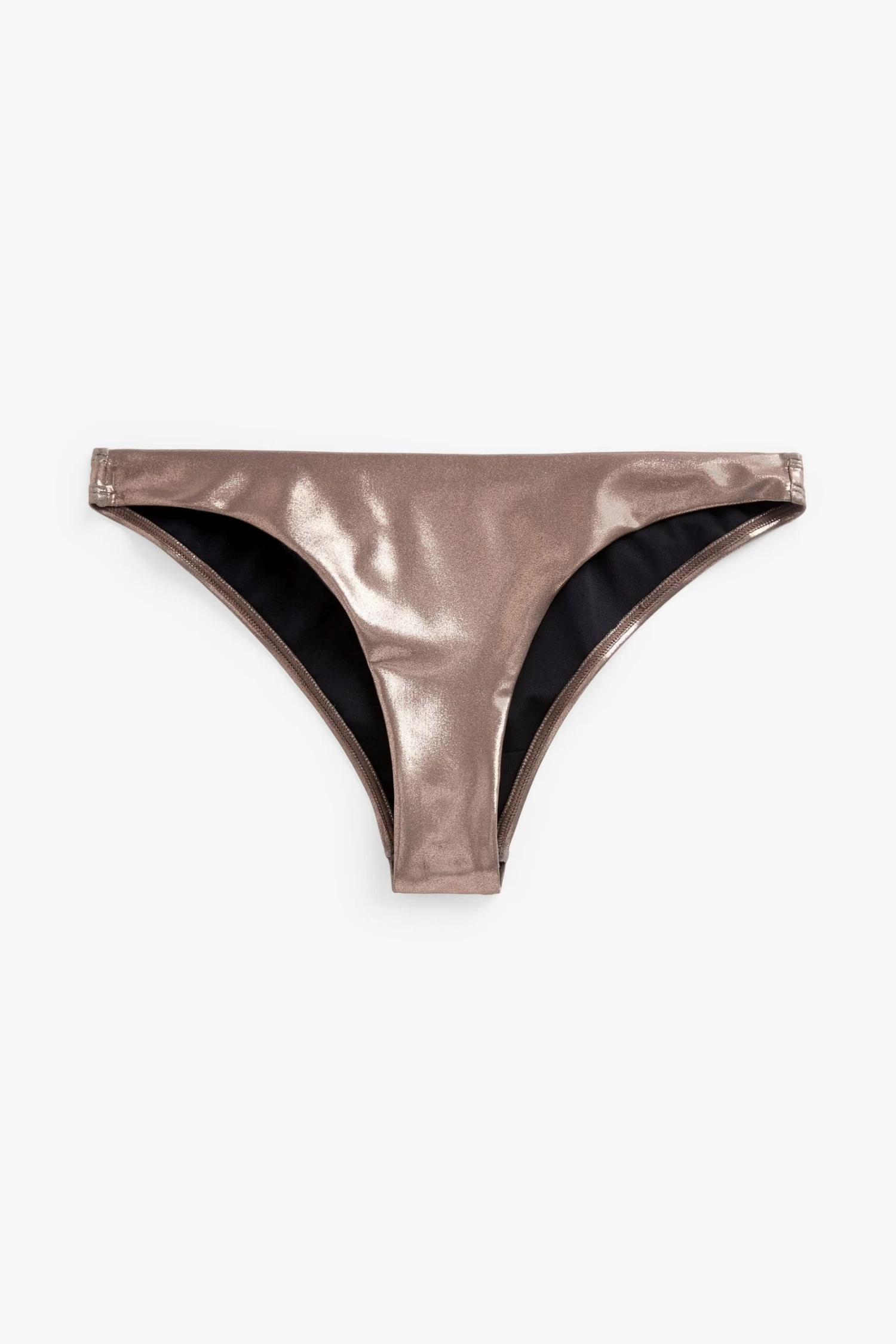 Mid rise. High-cut leg. Brazilian bum coverage. Flattering fit. Sparkle finish.
