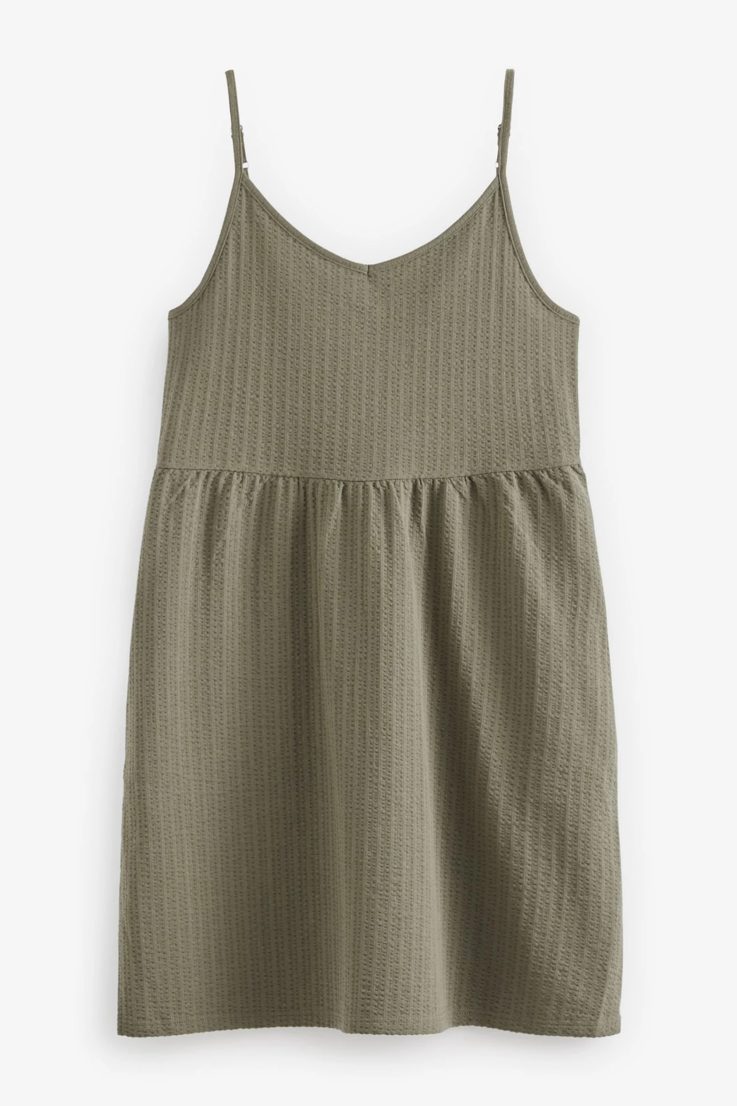 When the temperature rises, reach for our button-through strappy dress. This feminine design is made from a lovely seersucker jersey,perfect for rolling up and adding to your case, The thin straps are adjustable for a perfect fit. Styled with a cross-body bag and tassel earrings, it’ll take you from the beach to the bar and back again.