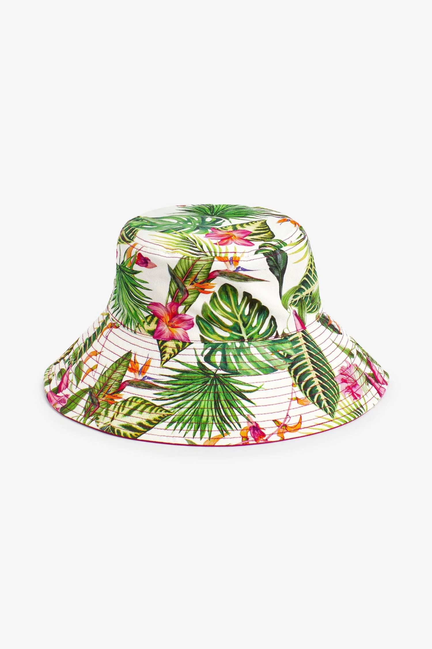 Next Cream/Pink Reversible Tropical Print Bucket Hat