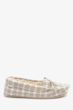 Enjoy kicking back and relaxing in style after a long day in these cosy slippers. The classic moccasin slip-on features a bow on the front and is faux fur lined for supreme comfort.