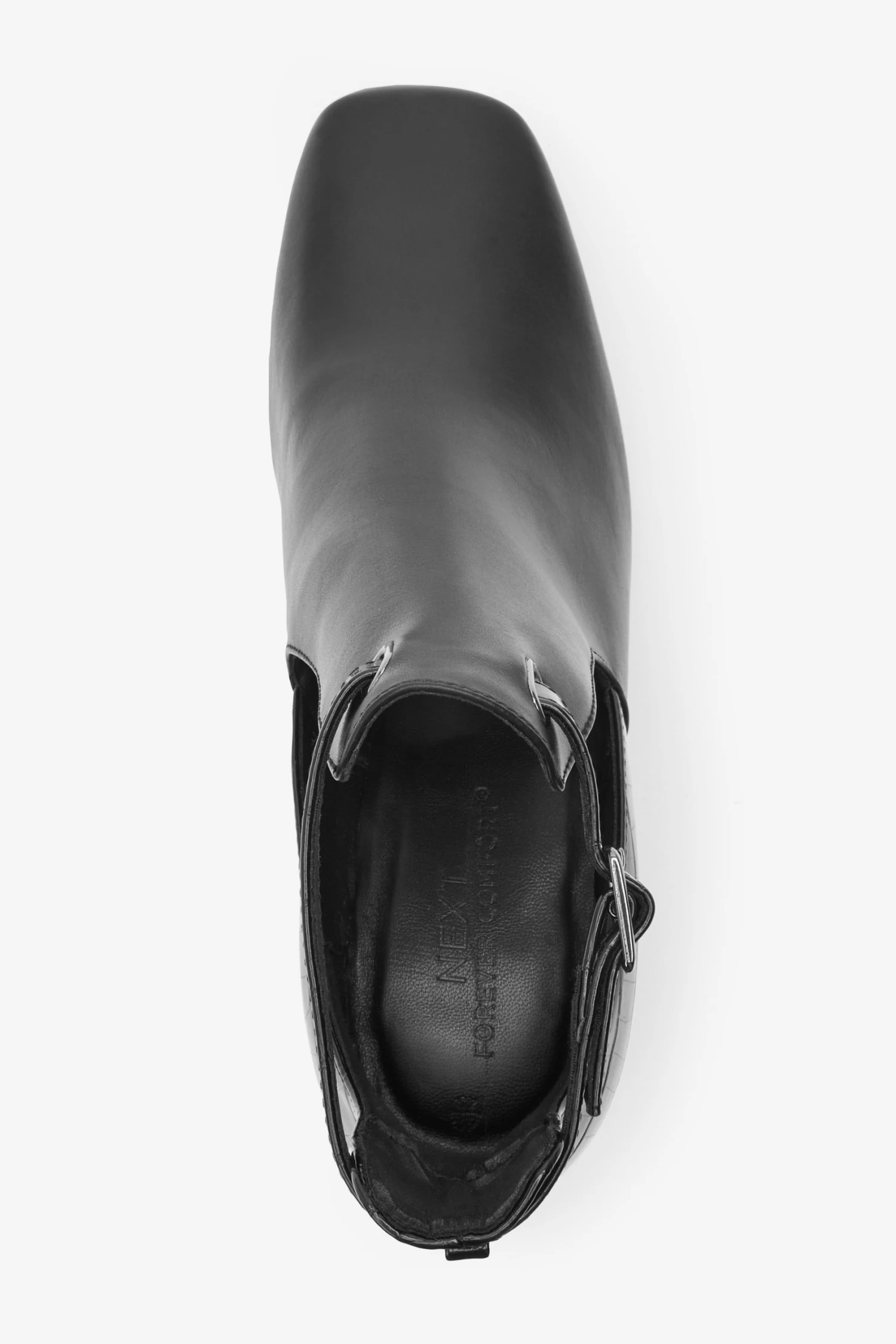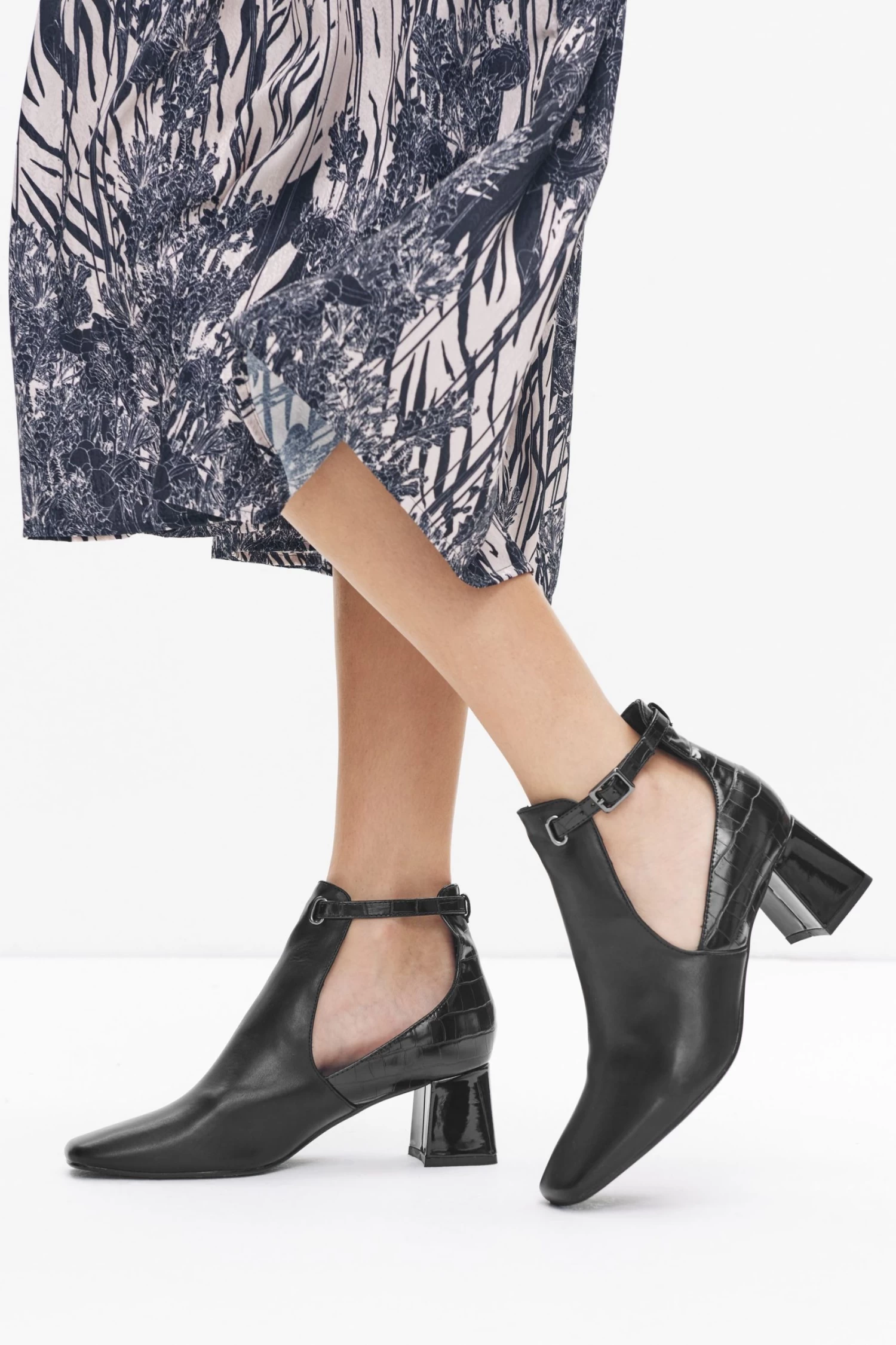 Style up your shoe collection with these cut out detail boots. Designed with mid-height block heels and square toes. Featuring a croc-effect back counter and an adjustable buckle ankle strap. Finished with Forever Comfort padding with a memory foam layer to help you stay on your feet all day in comfort and style.
