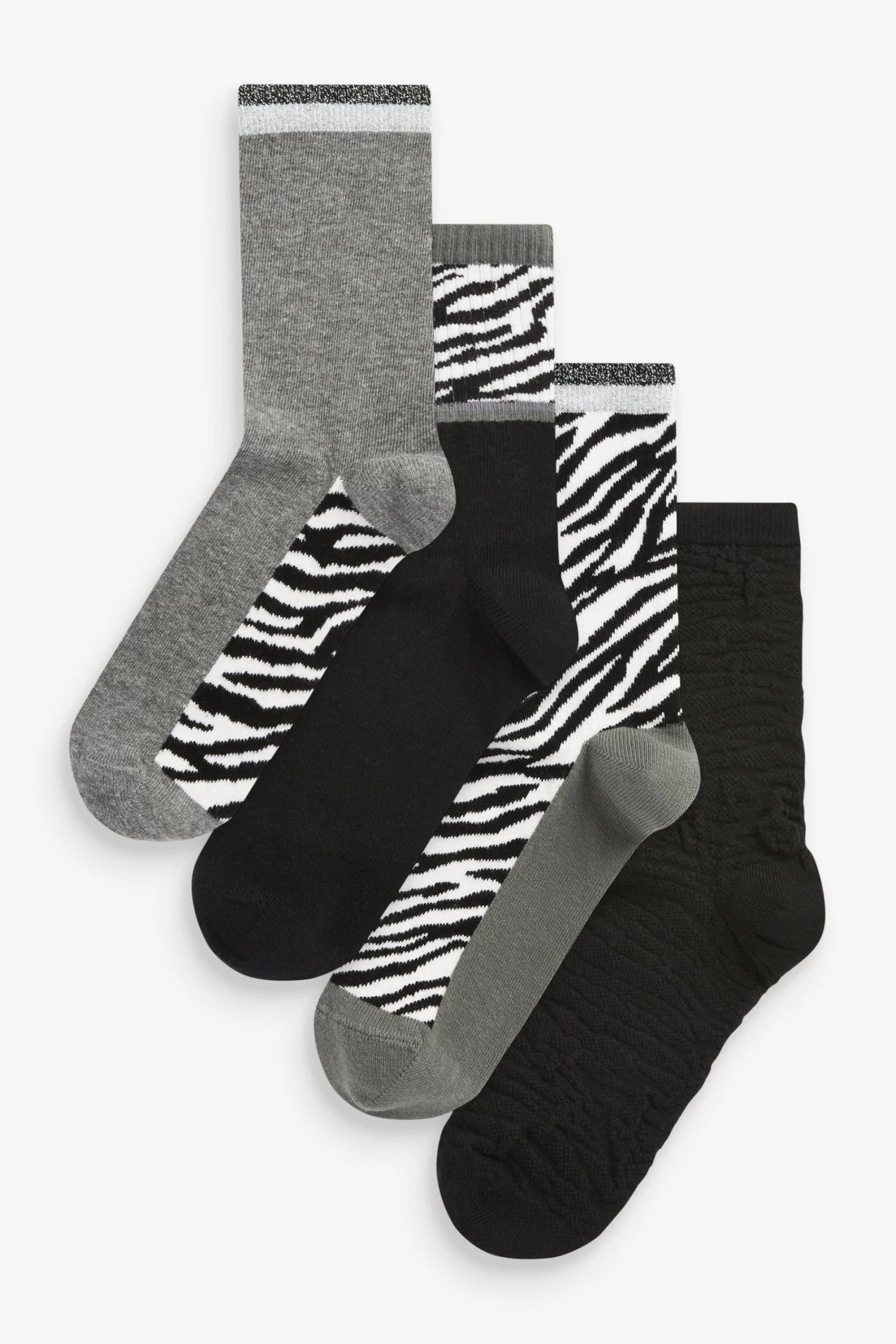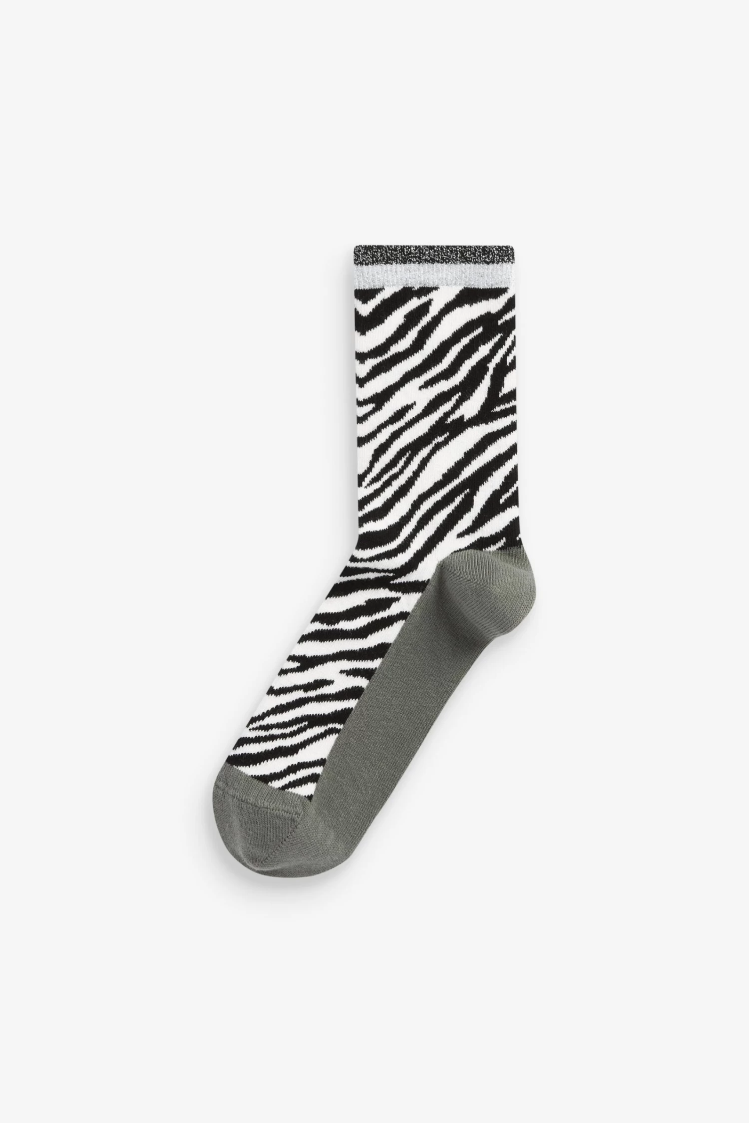 Next Grey/Khaki Green Zebra Ankle Socks 4 Pack