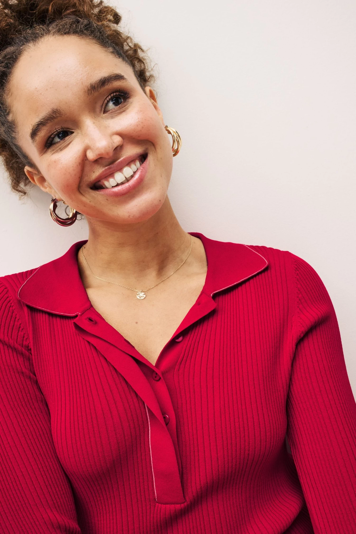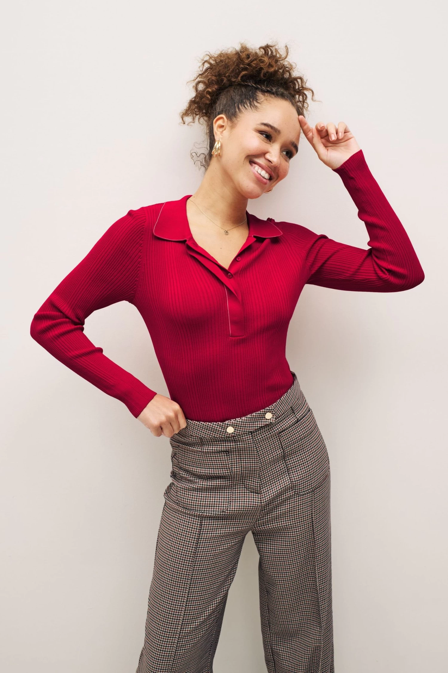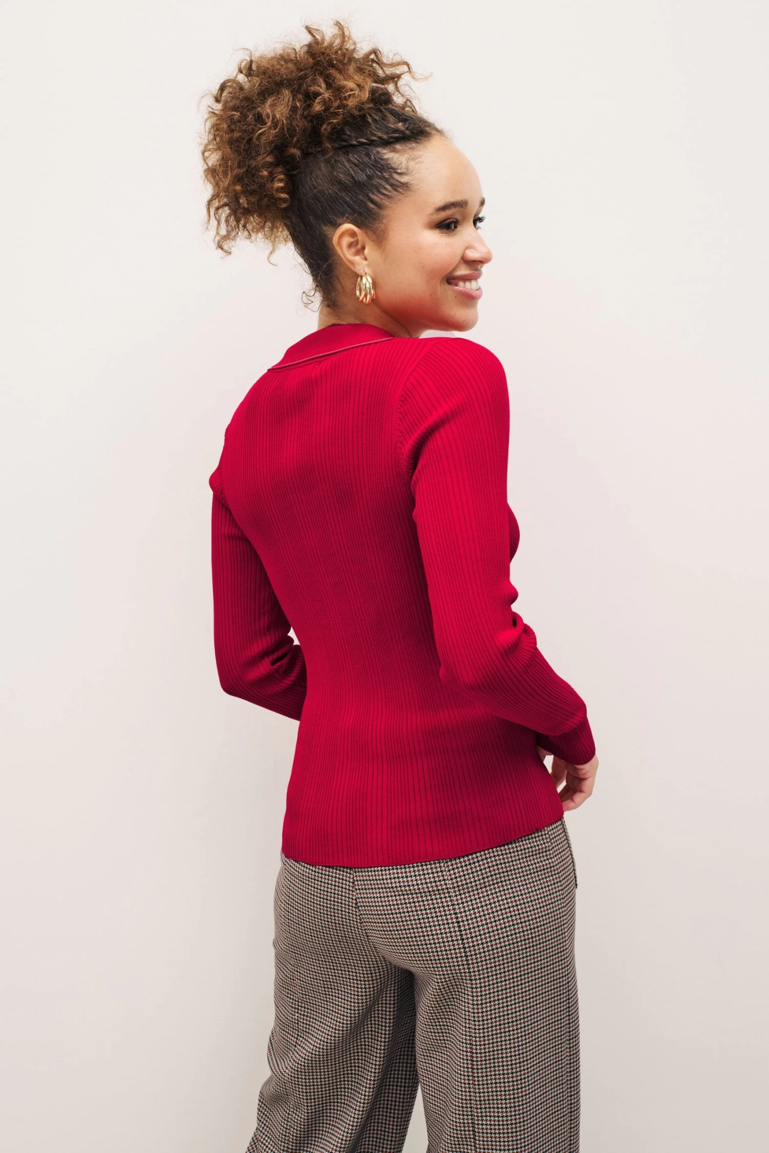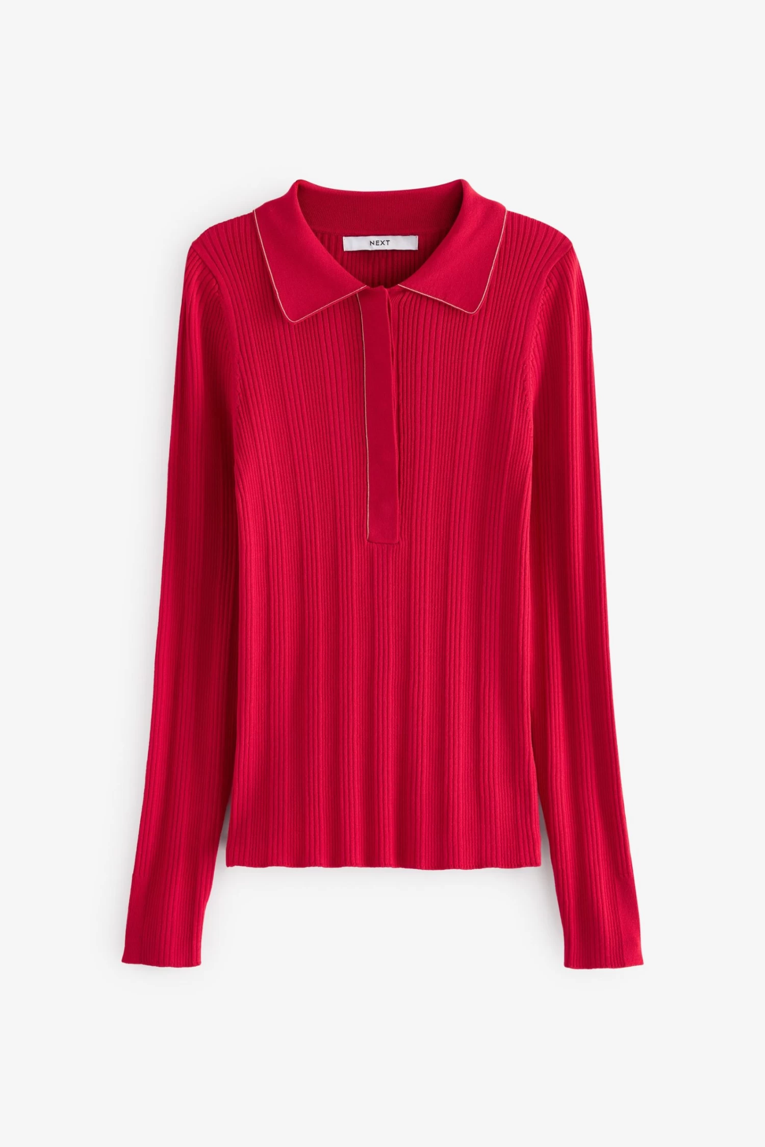 Knitted top. Polo neck. Tipping detail. Long sleeves.