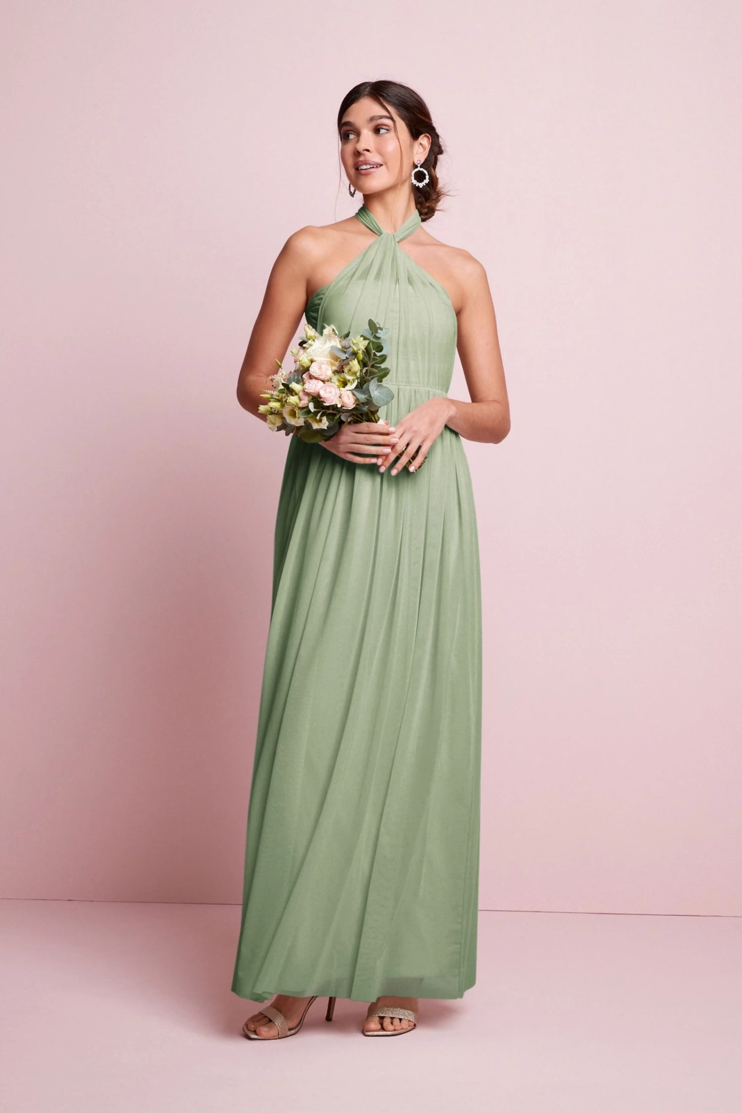 An elegant multiway dress with endless ways to wear, making it the perfect choice for all to feel their best featuring a timeless flowing maxi length. This dress has a soft mesh overlay with a stretchy jersey lining, and a concealed zip fastening. Ways to style include bandeau, halterneck, off-shoulder, one shoulder. Tie-back and twist straps. A must-have occasion piece