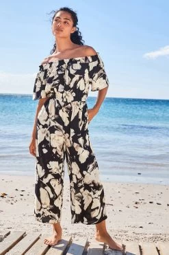 New holiday this summer? This gorgeous off-shoulder jumpsuit has got you covered. Designed in a bold print with culotte, relaxed trousers. This jumpsuit is perfect for lounging by the pool or having an evening meal in the sun.