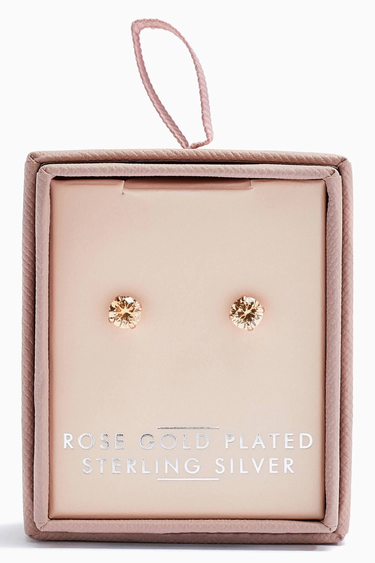 Stud earrings. Sterling silver rose gold plated. Cubic Zirconia. Comes in a gift box.