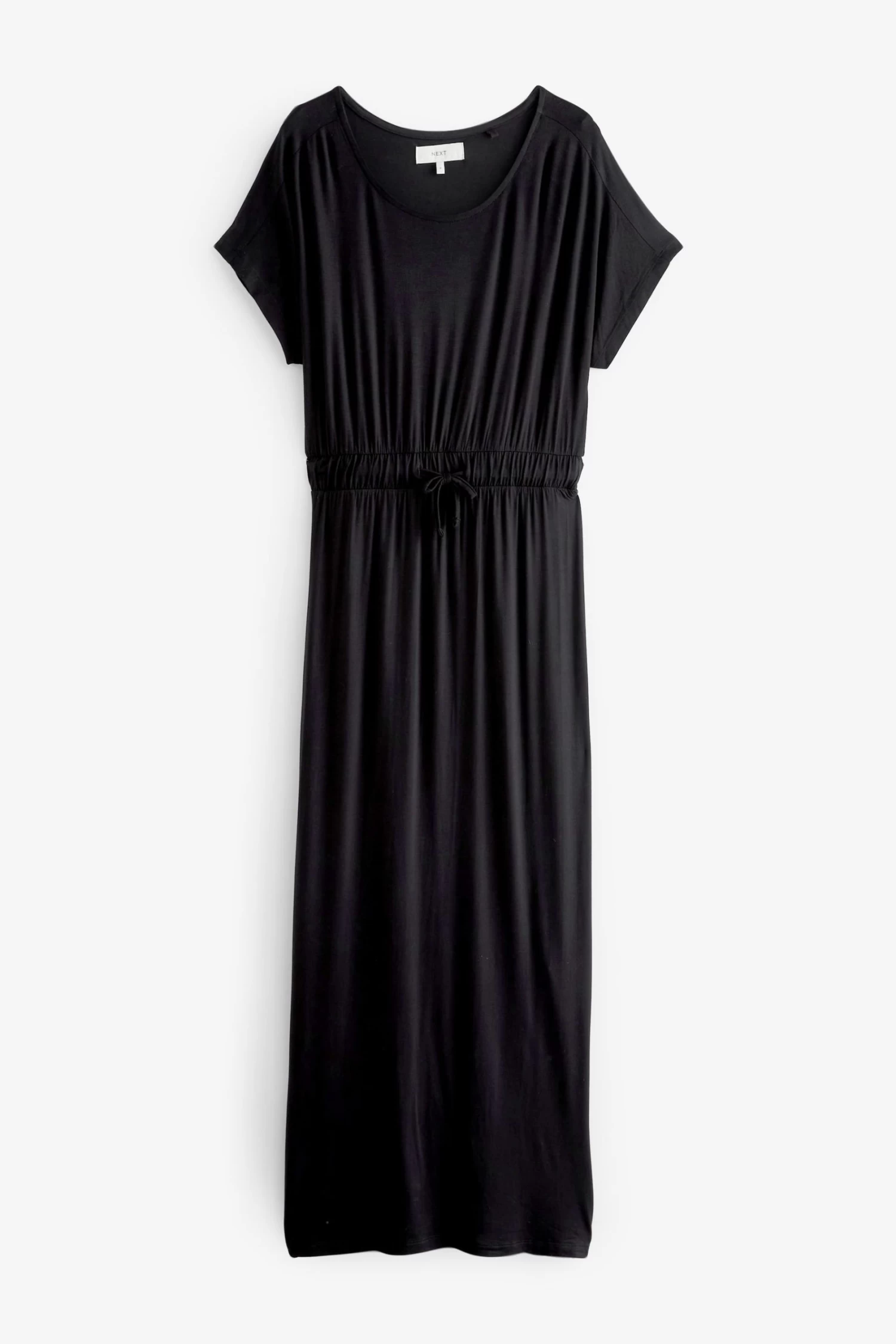 Perfect for warmer days, this soft jersey maxi dress features short sleeves and a stretchy tie-detail waistband. Wear yours with strappy sandals or fresh white trainers. Roll up in your suitcase to keep creases and crinkles at bay- perfect when packing light.