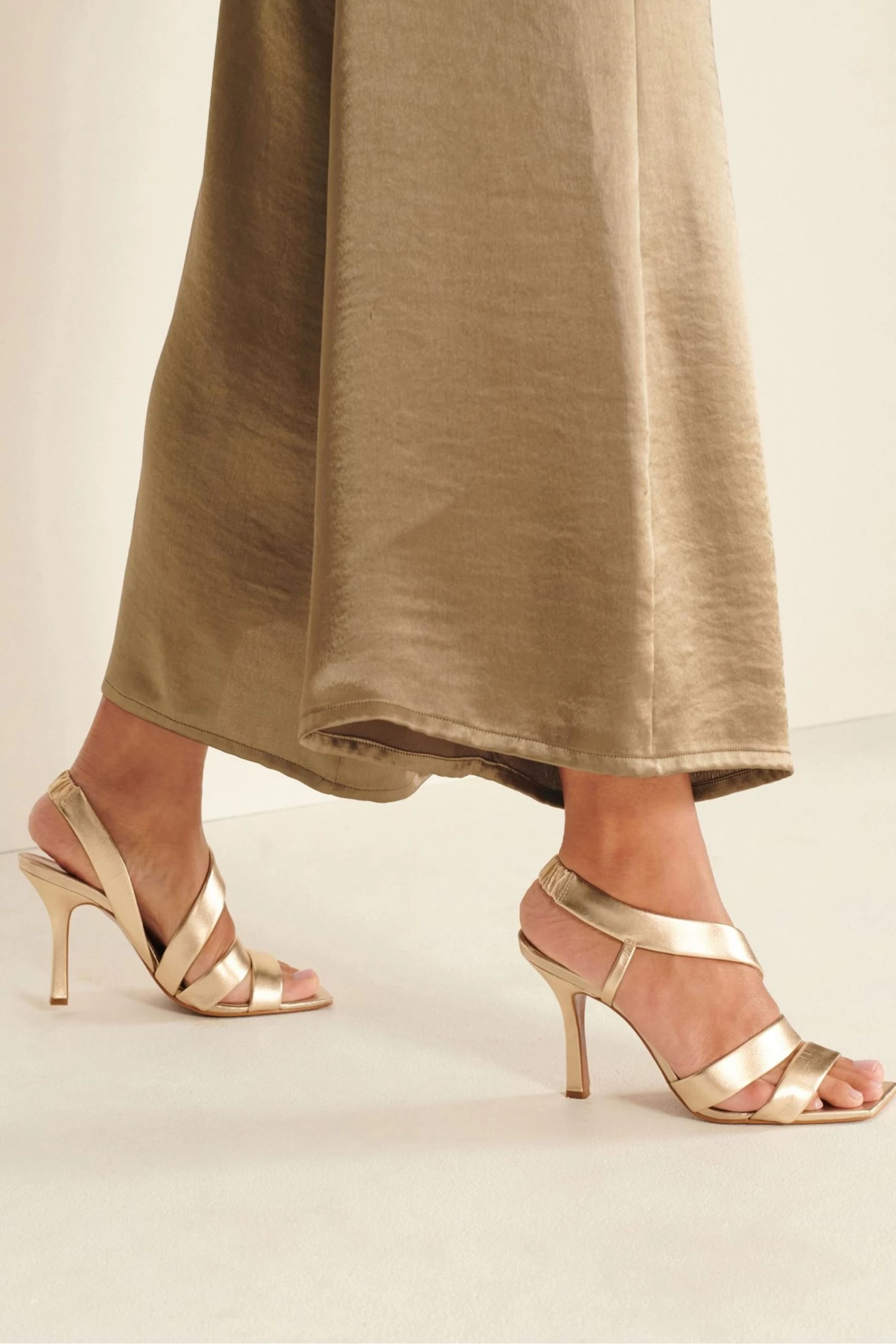 Sleek, sophisticated, signature. Heeled sandals with an asymmetric strap upper and heel strap to keep these heels in place. Our Signature Collection is made with premium leathers and offers superior comfort for everyday wear. Our attention to detail makes each pair a key investment piece for your wardrobe.