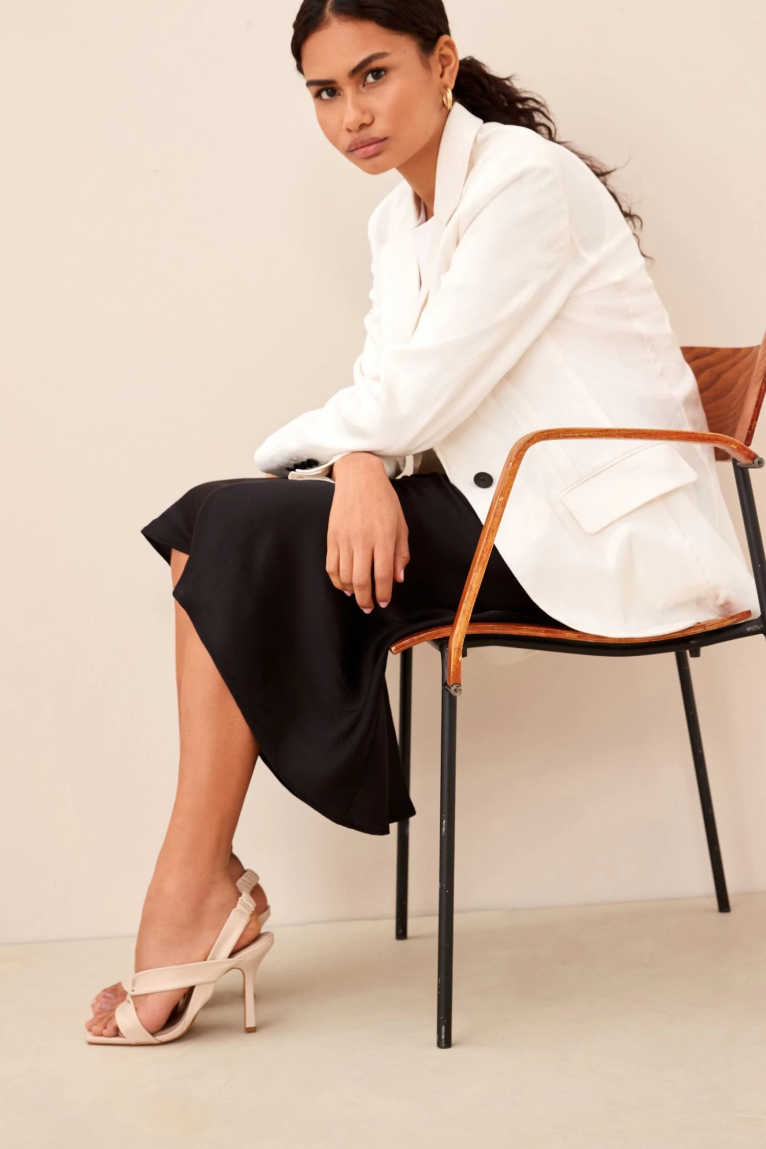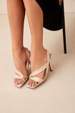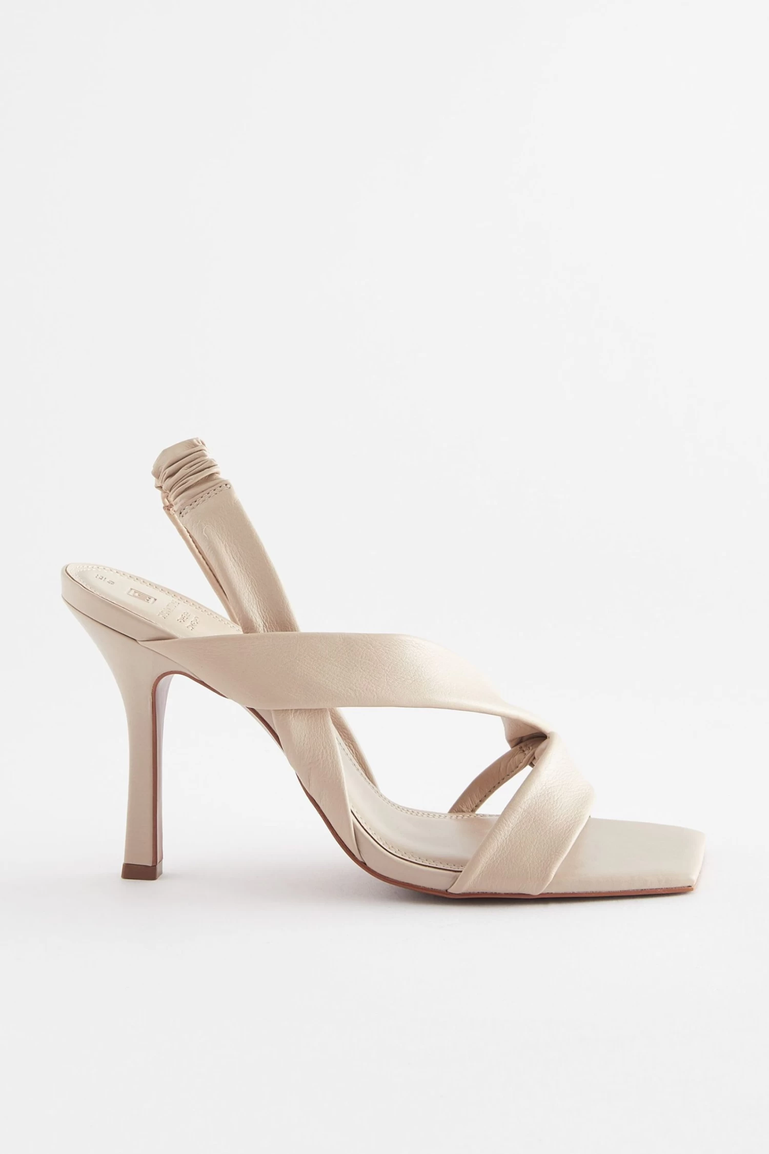 Signature leather. Square toe. Asymmetric design. High heel. Elasticated at back. Forever Comfort® memory foam padding.