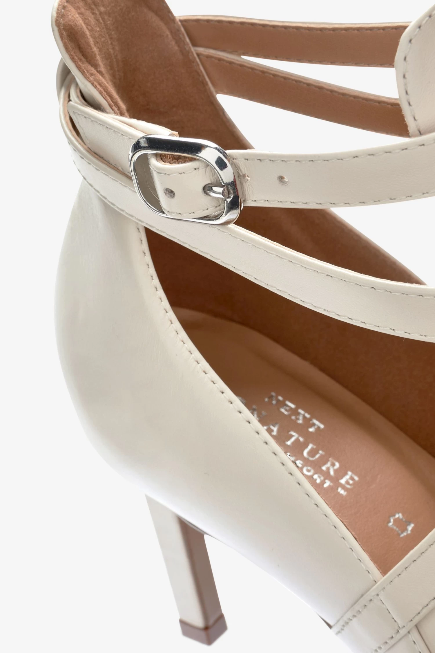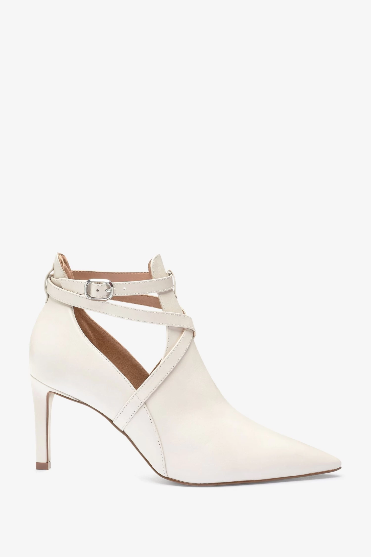 Pointed toe boots. Forever Comfort® Signature Leather and leather logo. Strap detail. Stilleto heel. Cut out detail. Padded back counter. Buckle fastening.