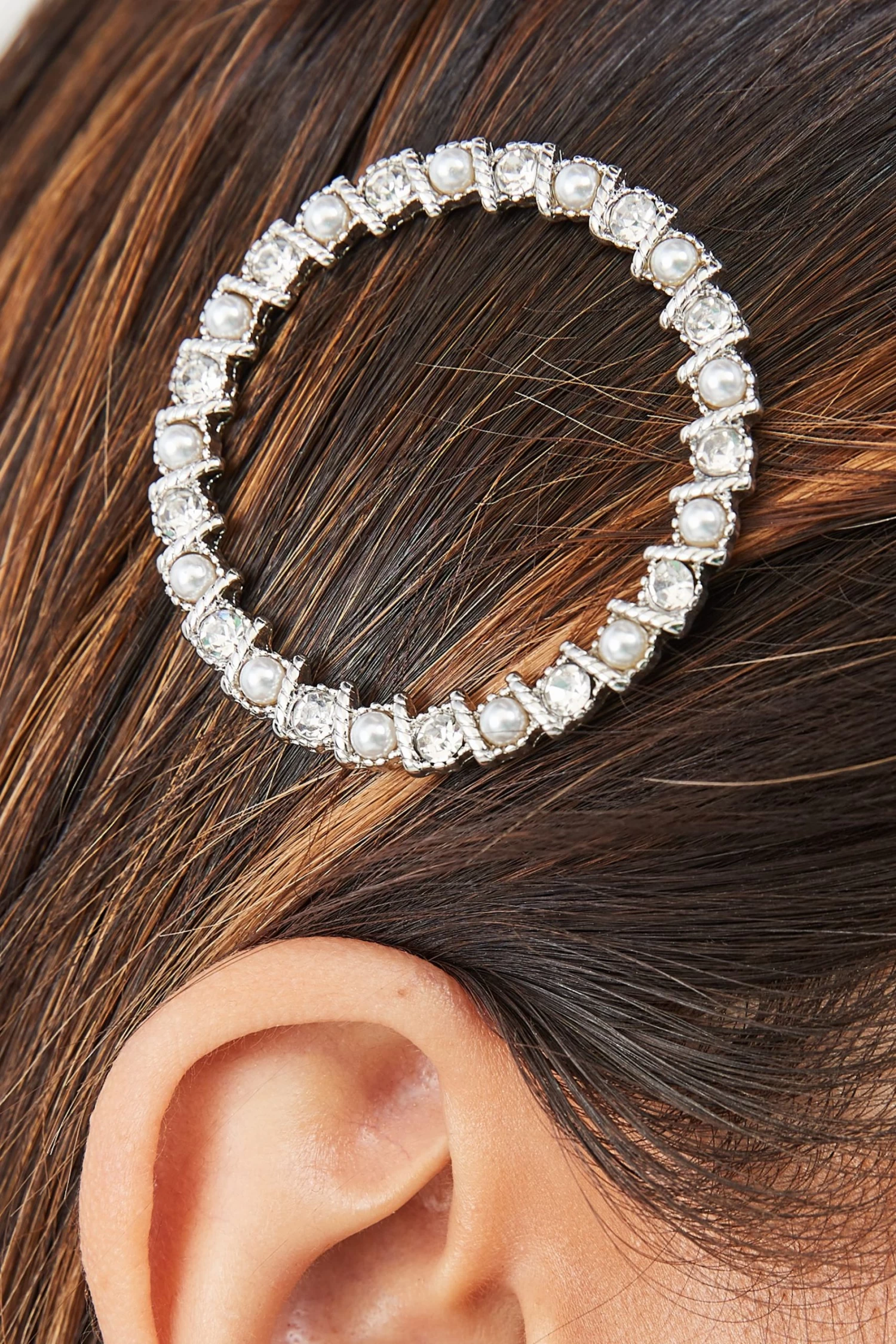 Silver tone. Recycled metal. Pearl and sparkle hair grip. Bridal/occasion wear. Contains 60% recycled pre-consumer zinc. Certified by control union, cu1118042.