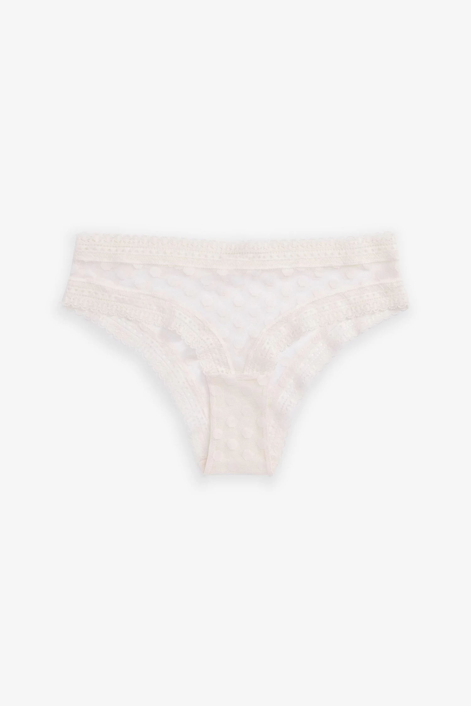Update your lingerie wardrobe with these spot mesh detail knickers. The knickers are made from a spot mesh design and are available in a Brazilian shape.