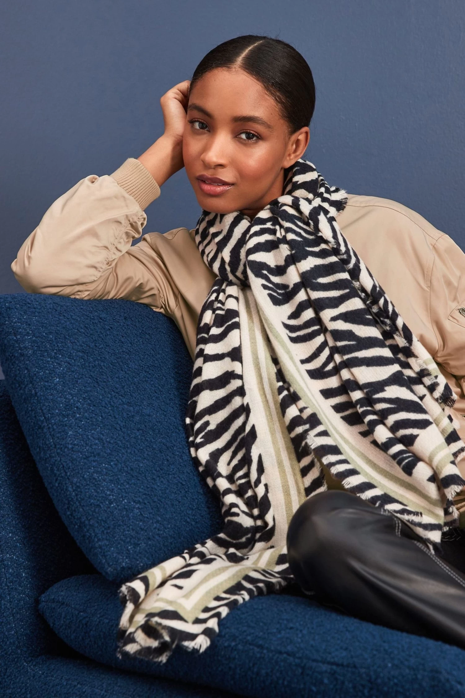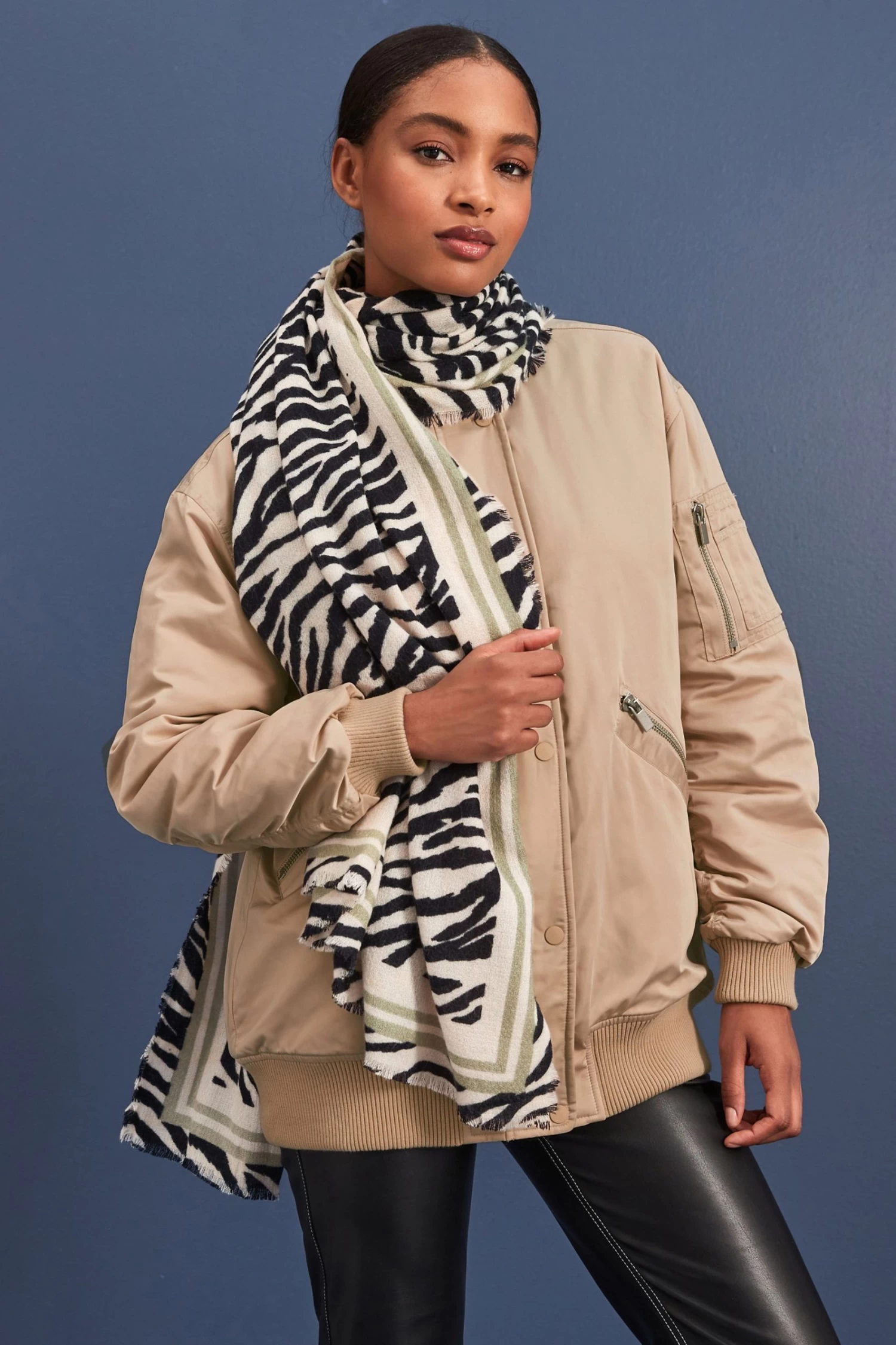 Next Zebra Print Border Midweight Scarf