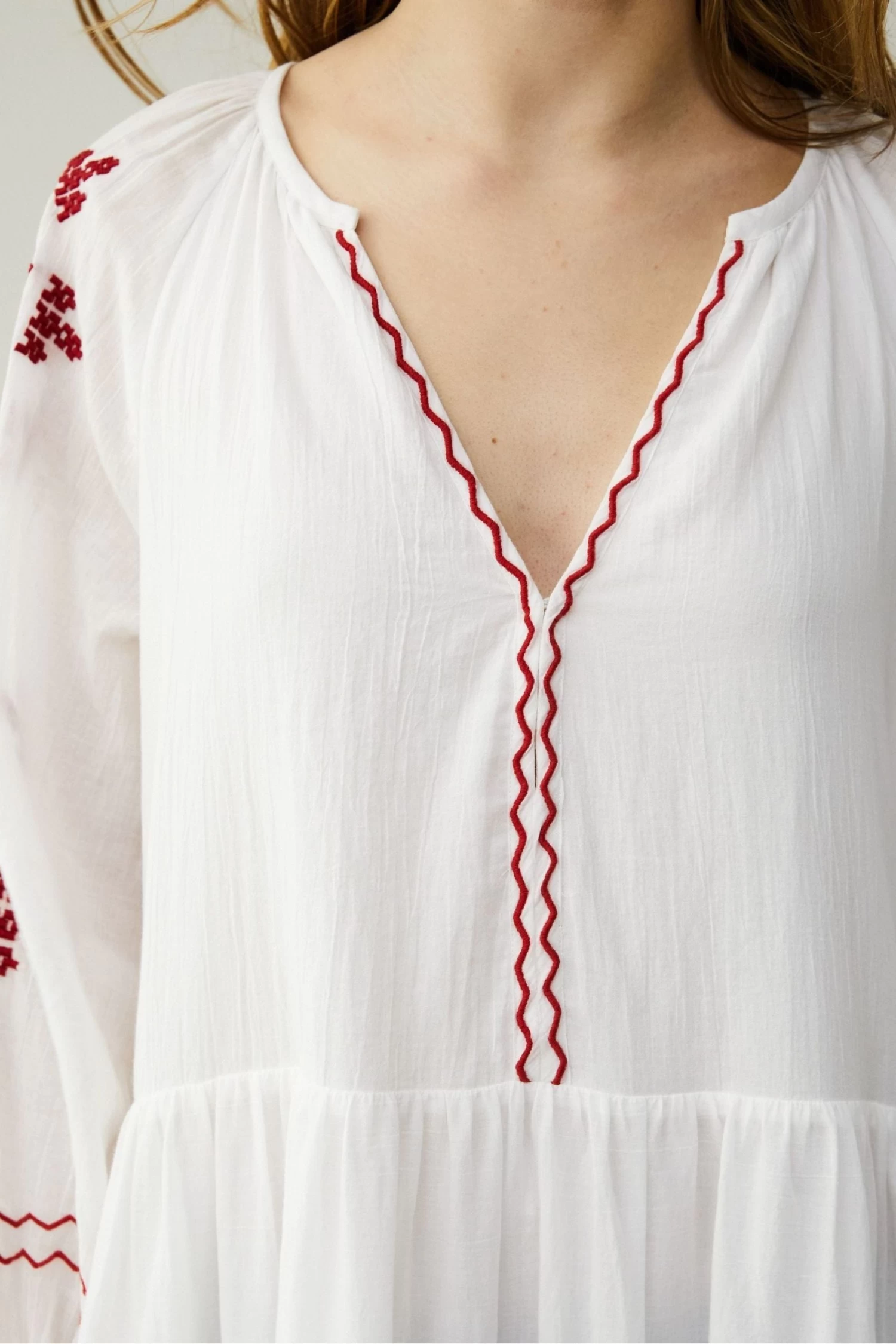 The Odd Molly Noor Dress is a long-sleeved organic cotton maxi dress. It has slits at the sides with attached tie strings. The sleeves have cuffs, giving them a nice balloon effect. A boho chic dress to wear season after season!