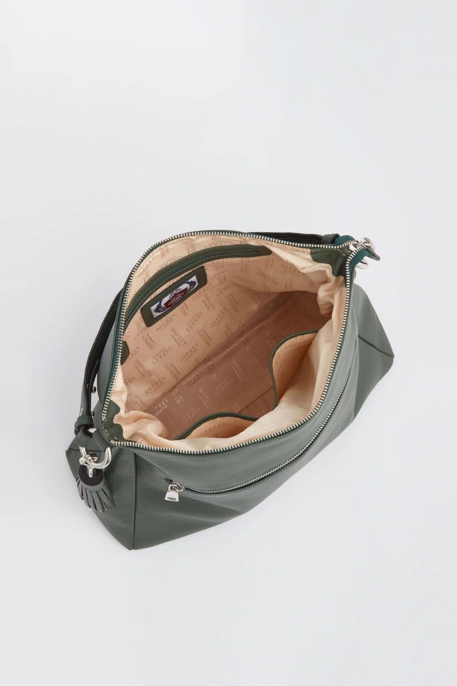 Osprey London is delighted to bring you one of our favourite bags of the year, The Stella Leather Hobo, exquisitely crafted in butter soft Grainy Hide leather. This elegantly understated zip-top shoulder bag is offered with a choice of two straps. The leather strap allows the bag to sit snugly under the arm and is great for more pared-back days, whilst the woven ‘guitar’ strap has a more off-duty, preppy feel. Wear both straps together with the guitar strap hanging down for a relaxed, contemporary vibe.