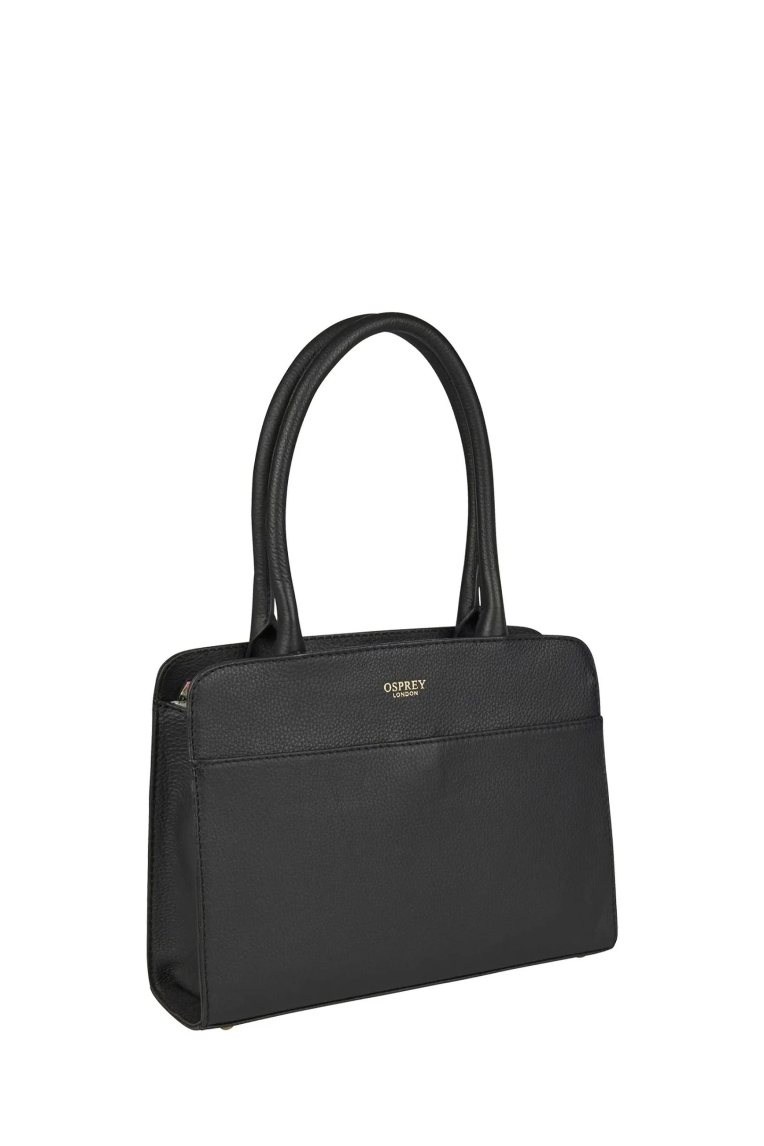 OSPREY LONDON A4-compatible structured shoulder bag, handcrafted in guava Grainy Hide leather, with self-coloured stitching, hand applied edge colour and gold metal hardware throughout.