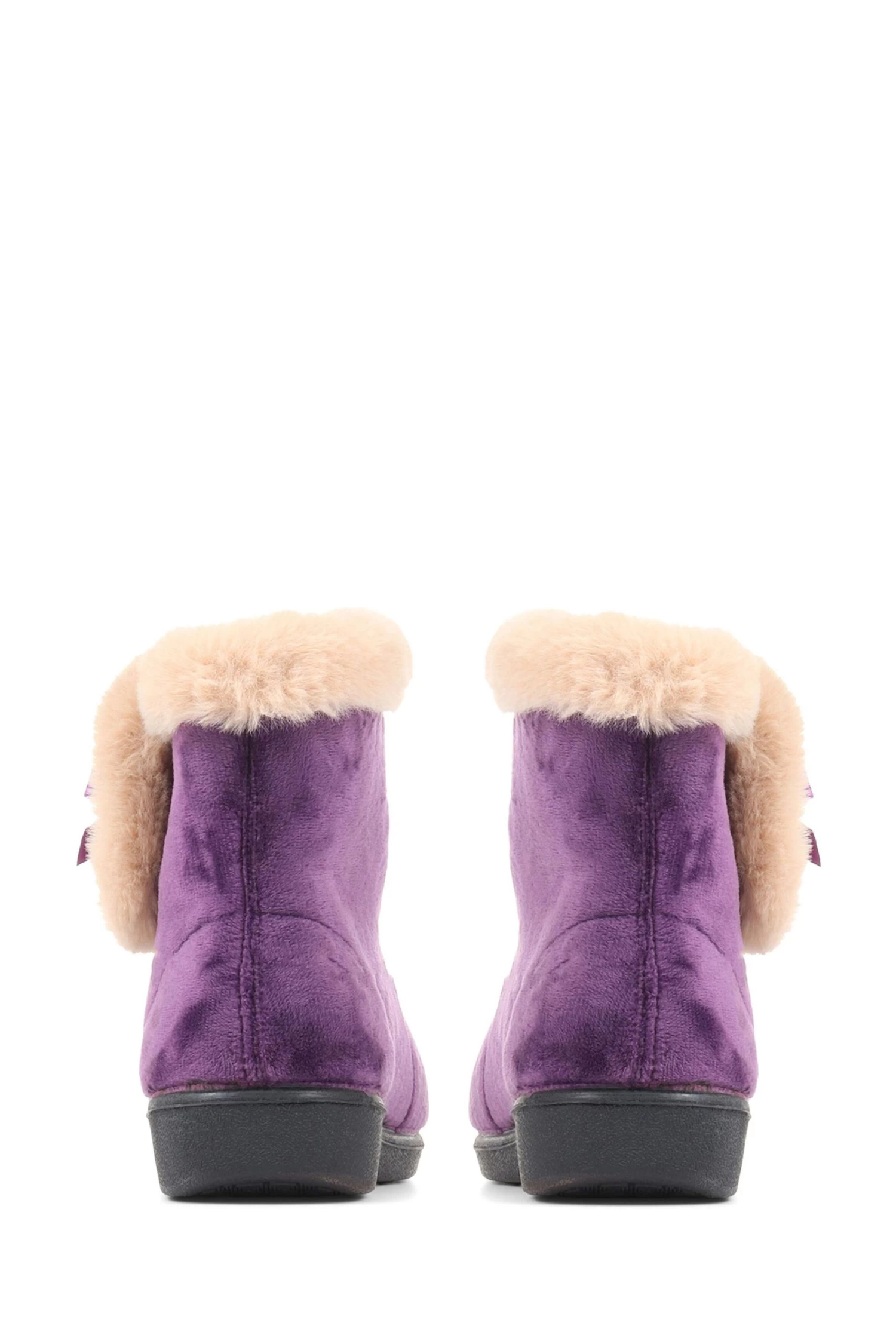 Slippers won’t get cosier than this! Lined with supersoft faux fur and a deeply cushioned insole you won’t be able to resist the comfort, simply fastened with a touch-fastening point at the calf, you can even switch up your looks by folding down the calf.