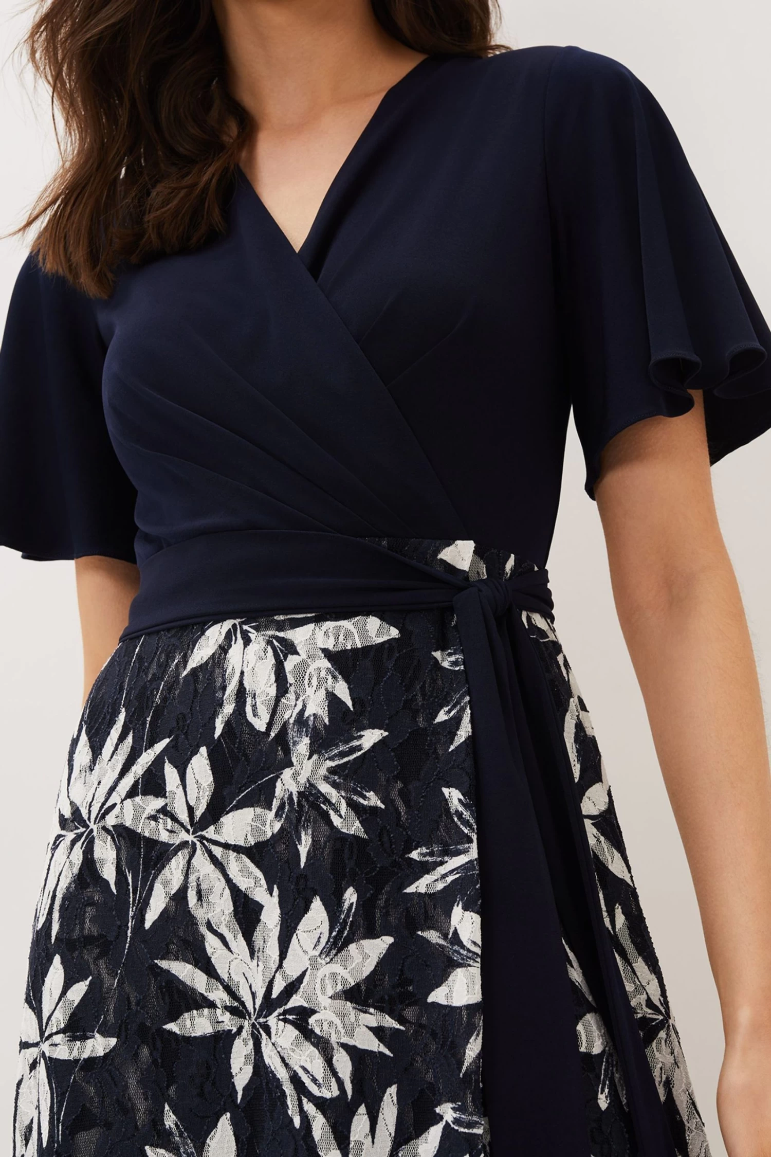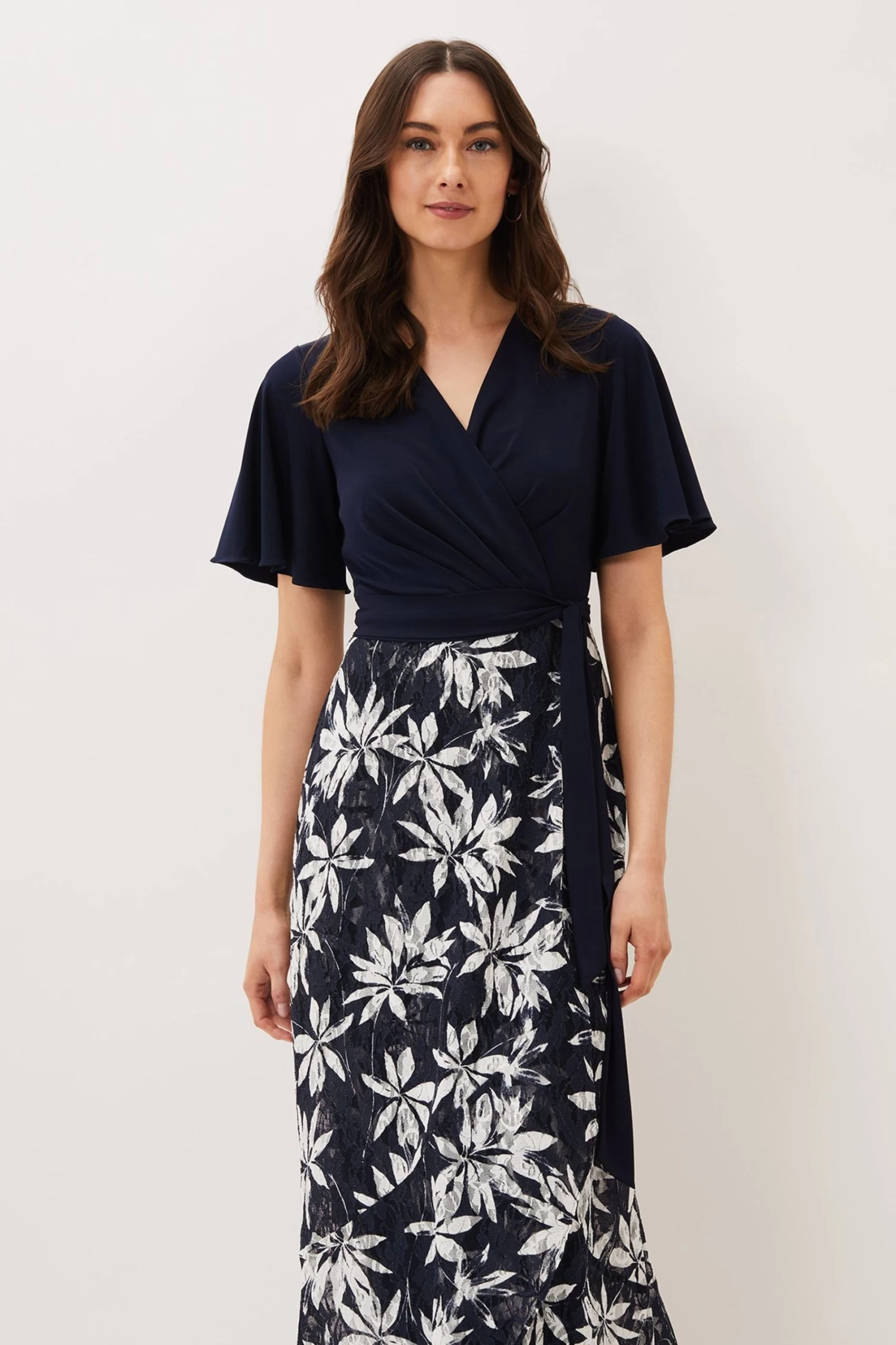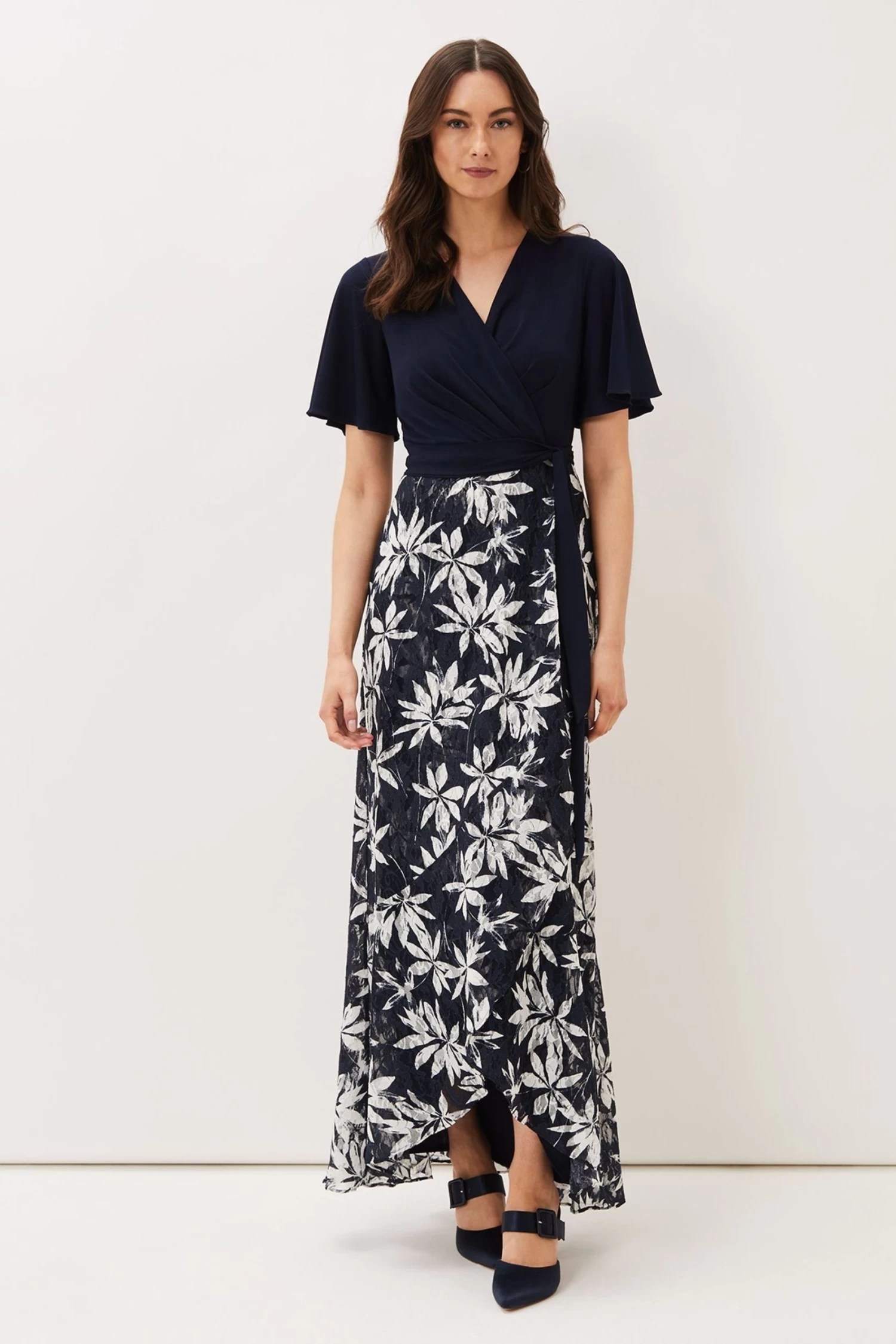 For summer days and garden parties alike. Phase Eight’s maxi dress features a wrap navy bodice that flows to a floral skirt with delicate ruffle details. Wear it with heels and a clutch, using the adjustable waist tie to accentuate your waist.