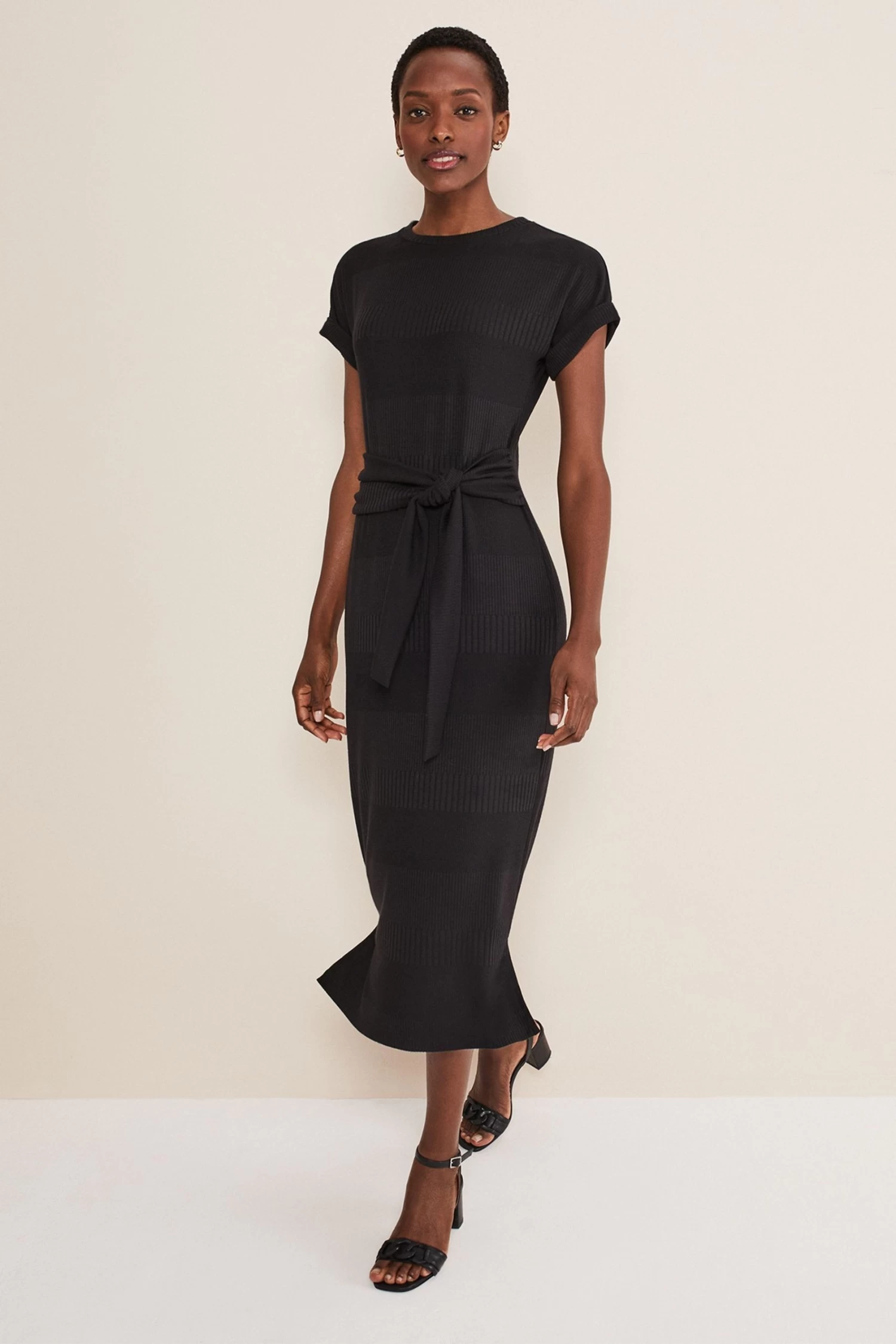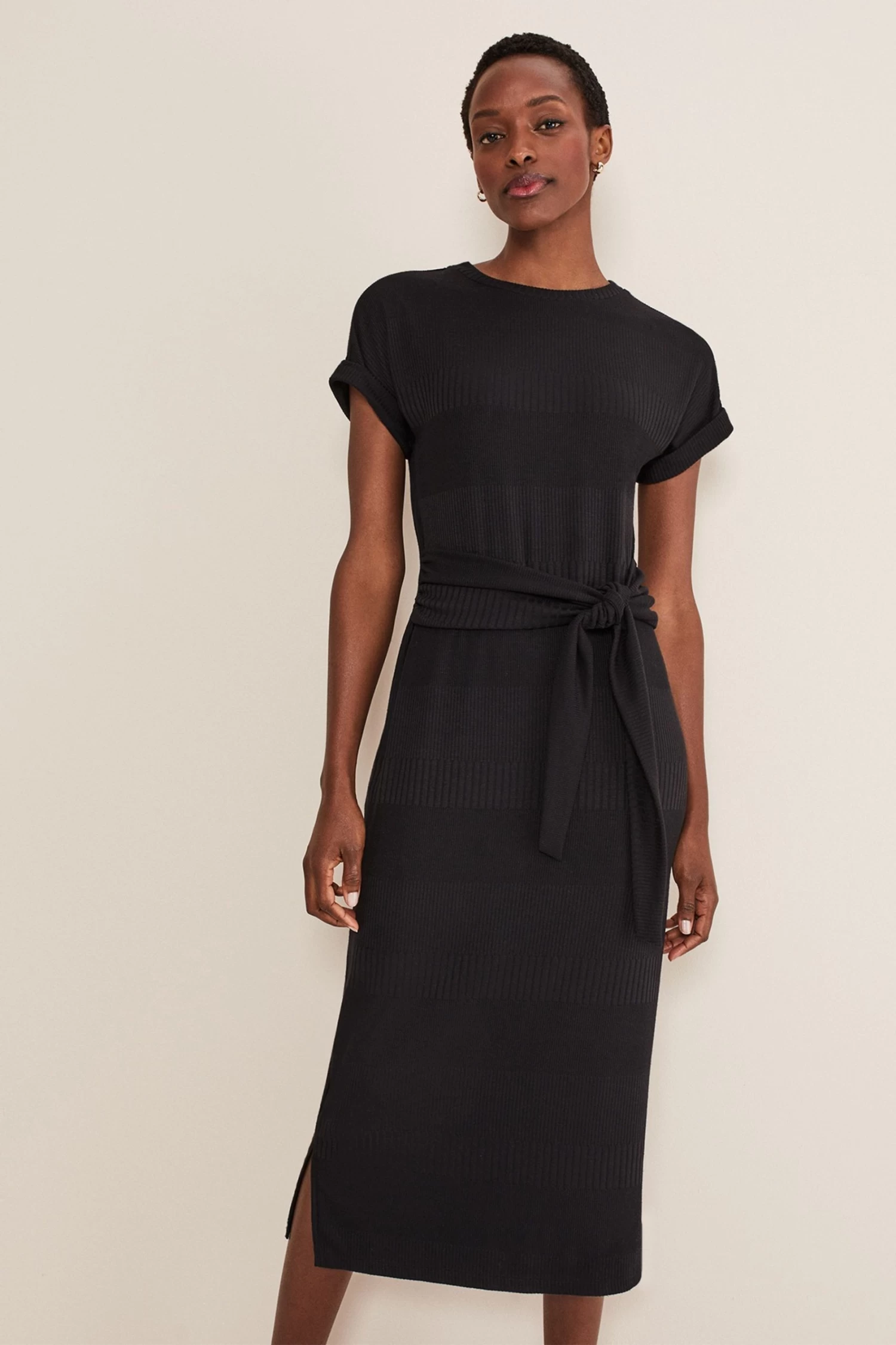 Our Yazmina jersey dress is in a new shade. Our dress is designed with a contemporary ribbed texture and finished with an on-trend wrap detail at the waist. Style this versatile dress with trainers or heels for the perfect Monday-to-Sunday look.