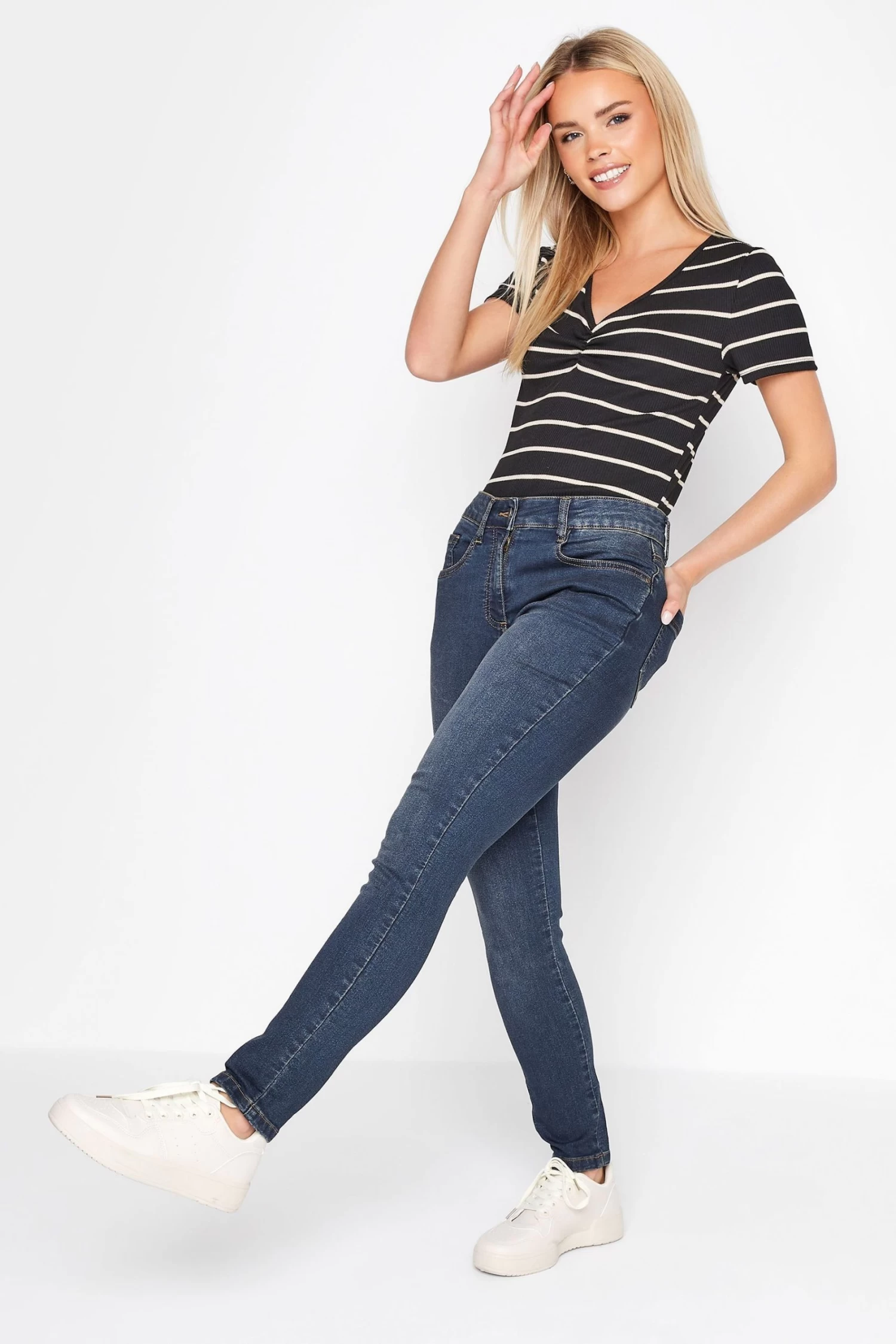Look to these AVA jeans for everyday styling. Comfortable in stretch denim they feature a skinny style with a flattering high waist and belt loops finished off with five pockets. Pair with a t-shirt and trainers for a versatile look.