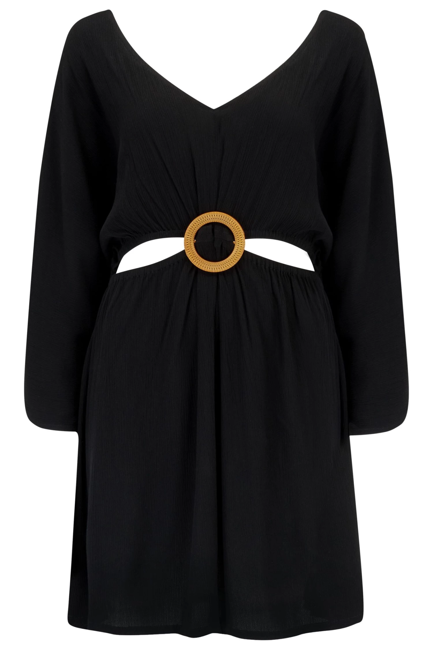 Calling all beach babes! We have the perfect cover up made just for you. Featuring cheeky cut out detailing, the Cut Out Crinkle O Ring Cover Up will fulfil all your getaway dreams. This lightweight style is super comfortable, featuring an elasticated waist and 3/4 sleeves. As if this V-neck style wasn t gorgeous enough, we ve added rattan effect ring detailing for the ultimate beach babe look. We take the impact that our business has on the planet seriously, that is why our Cut Out Crinkle O Ring Cover Up is made from sustainable EcoVero™ fabric. EcoVero™ is a natural and more sustainable viscose made using sustainable wood sources. It has a substantially smaller environmental footprint.