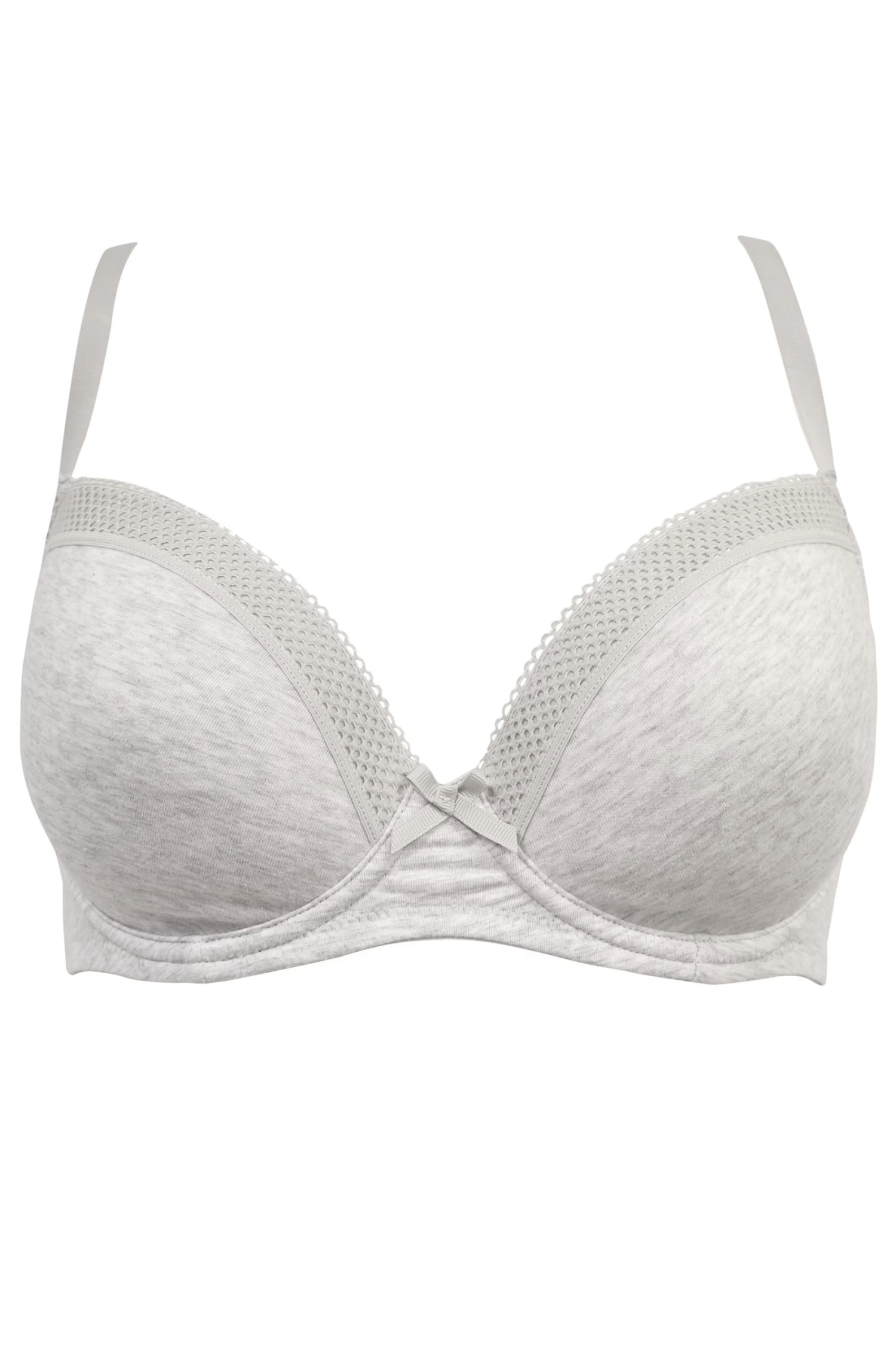Underwired. Padded. T-Shirt Bra. Soft cotton marl fabric. Adjustable straps. Hook and eye fastening.