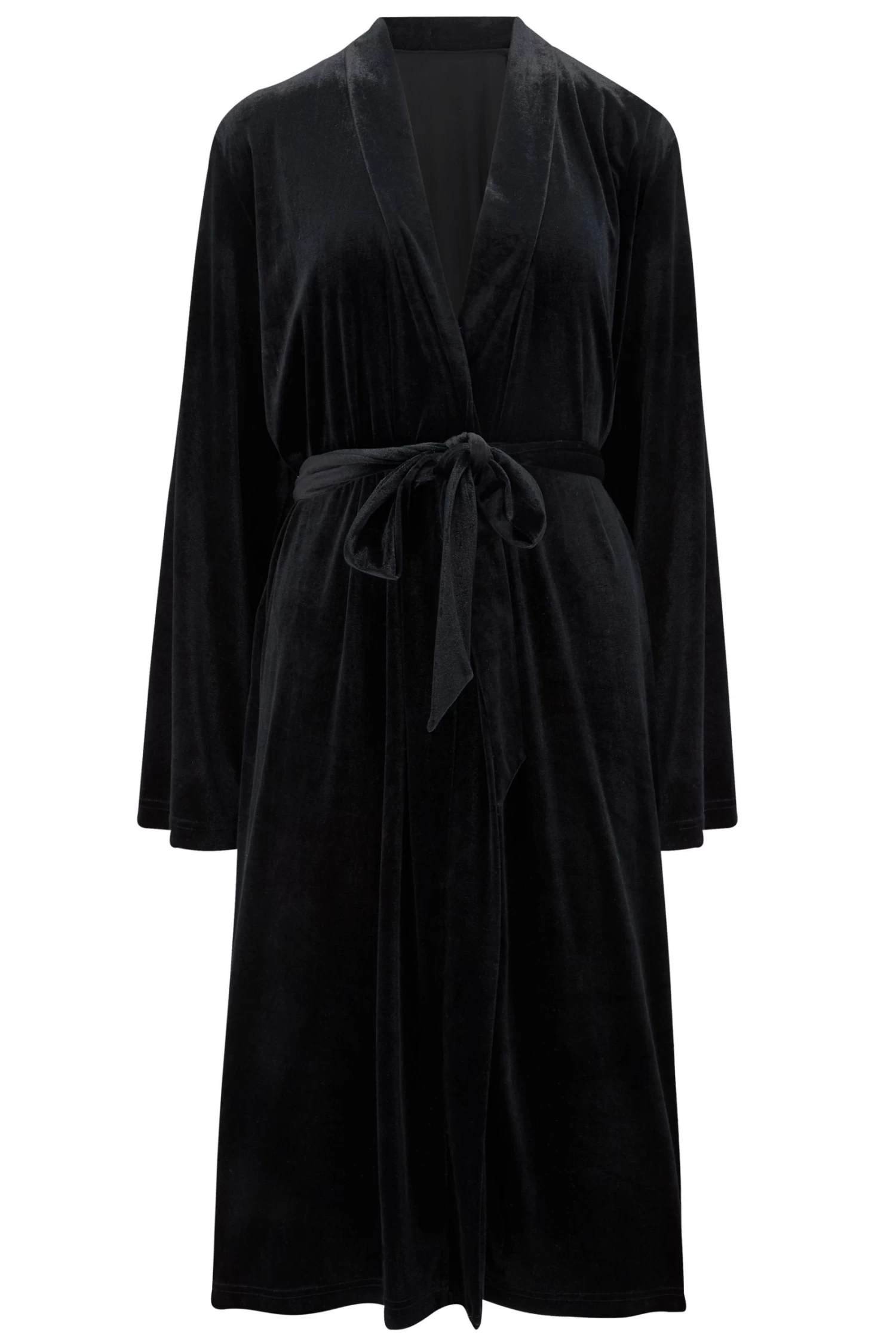 Velour Gown Long Sleeve Wasit Tie Pockets Midi Length.