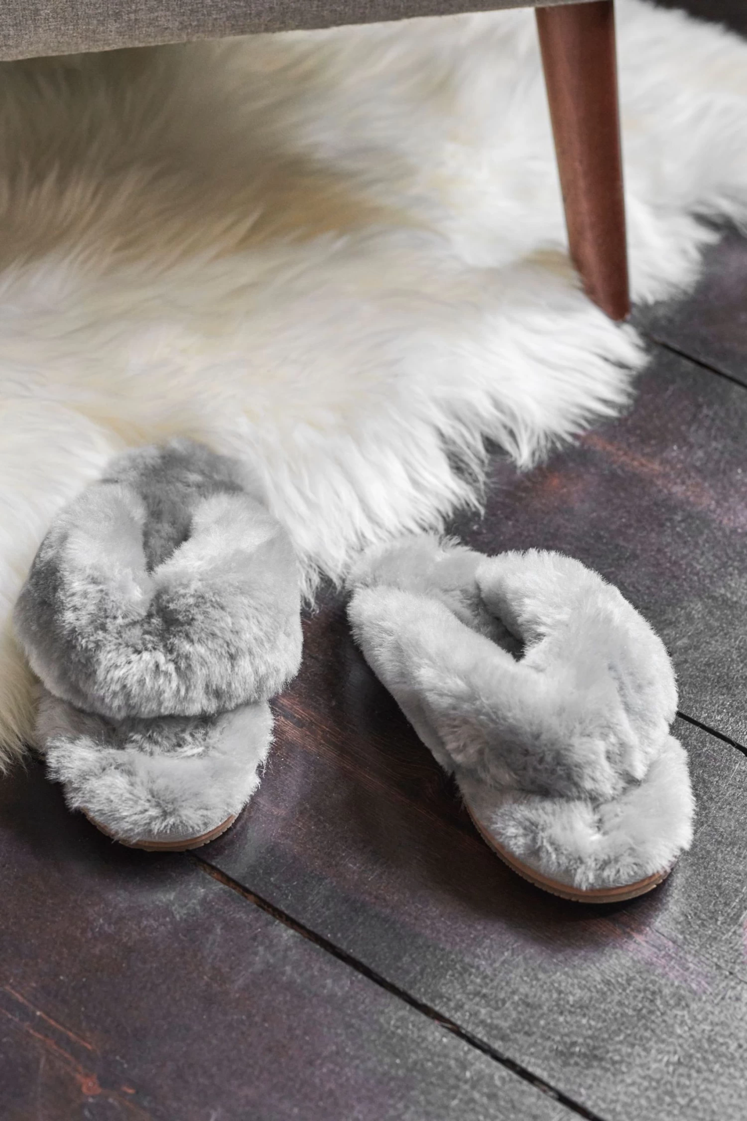 Pure Collection Grey Sheepskin Toe Post Slippers