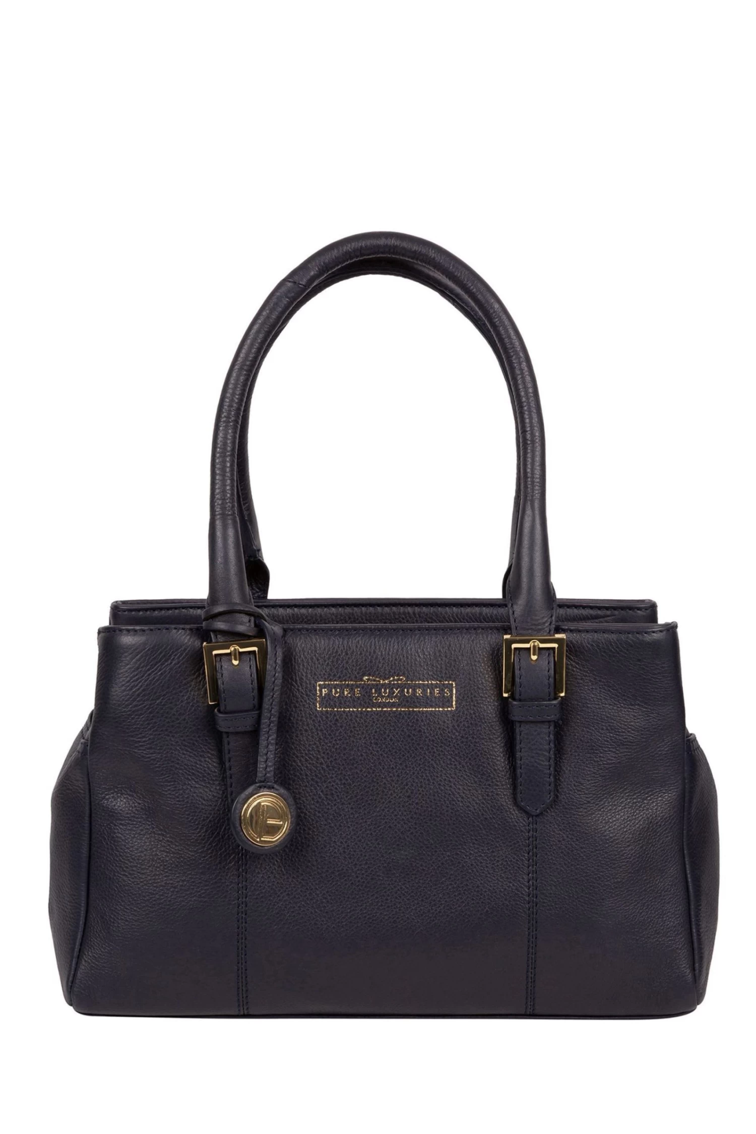 The Astley handbag from Pure Luxuries London features a classic design with a luxurious finish. Crafted from gorgeously fine-grain genuine leather with matching leather handles. A zip-over fastening conceals the 100% natural cotton lined interior and has two compartments either side providing ample storage for your belongings, secured with magnetic fastenings. Adorned with eye-catching gold-coloured metal fittings, Pure Luxuries London hanging charm and logo for the perfect finishing touch.
