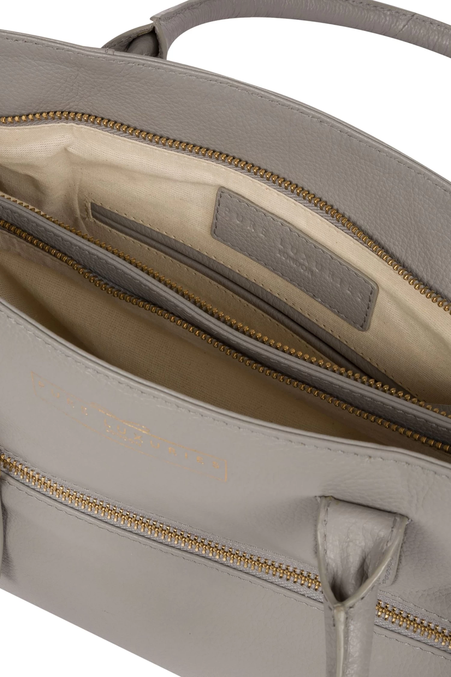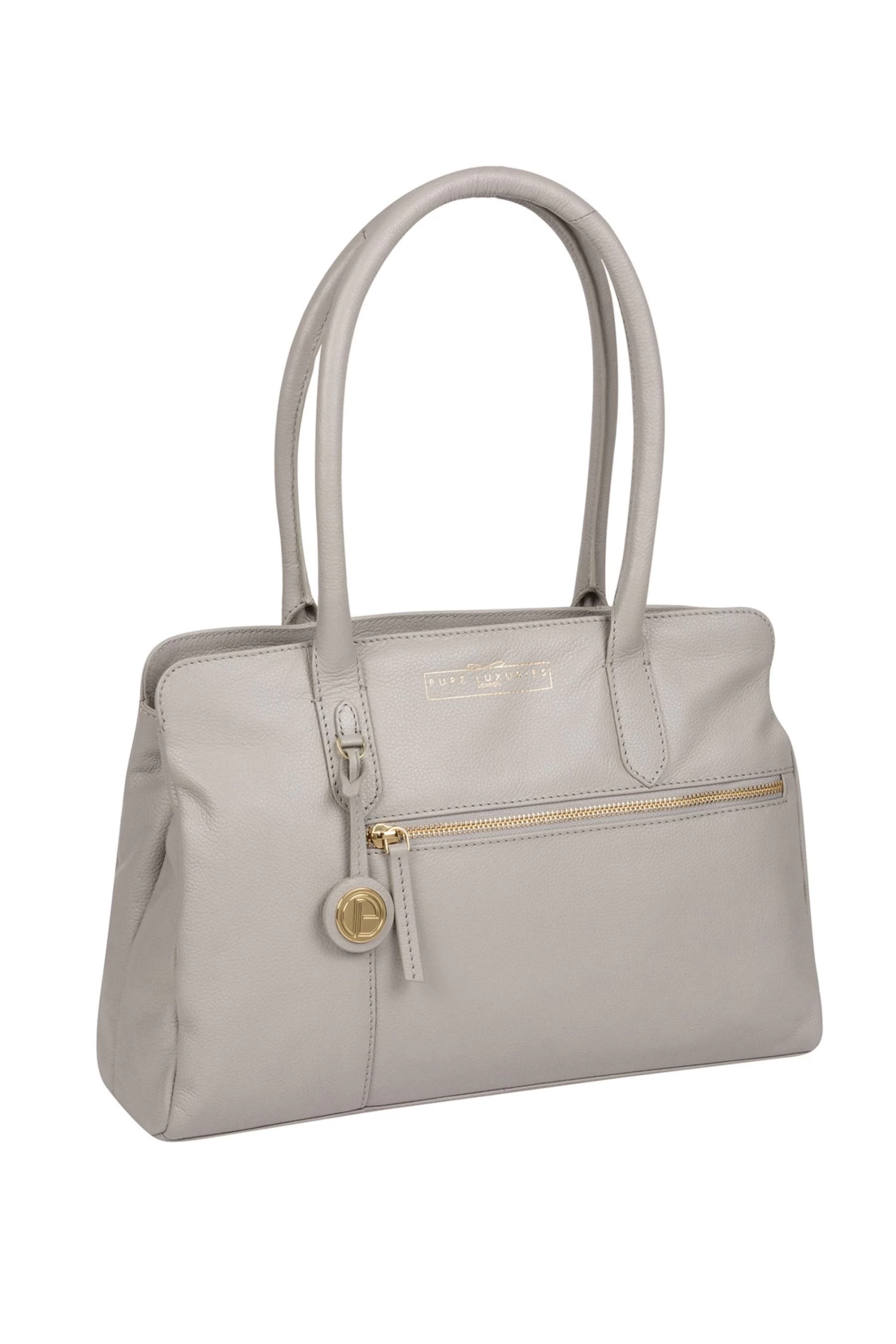 The ‘Darby’ leather handbag is crafted from genuine, supple leather with a beautifully soft fine grain finish. Part of the Pure Luxuries Classic Collection featuring beautiful classic designs with a luxurious finish. Dual zipped central compartments complement the pockets on the interior and exterior of the bag, providing ample storage space for all your essentials. Two central compartments come lined with gorgeous, 100% natural cotton. Furnished with gold coloured eye-catching metal fittings for the perfect finishing touch. Adorned with matching leather carry handles and the gorgeous Pure Luxuries charm with logo.