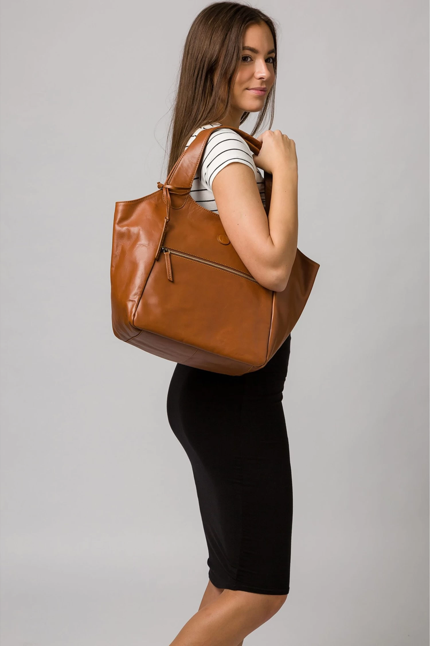 Part of the Pure Luxuries Vintage Collection, featuring timeless designs with a contemporary twist, the Loxford tote bag is handcrafted from natural leather with a luxurious patina. Secured with a zipover closure, the spacious central compartment is fully lined with natural 100% cotton and features two internal pockets, ideal for a smart phone and keys. Additional storage is provided with an exterior full-length zipped pocket, perfect for when you are on-the-go. Comes with matching leather handles and finished with the distinct Pure Luxuries charm for a stylish touch.