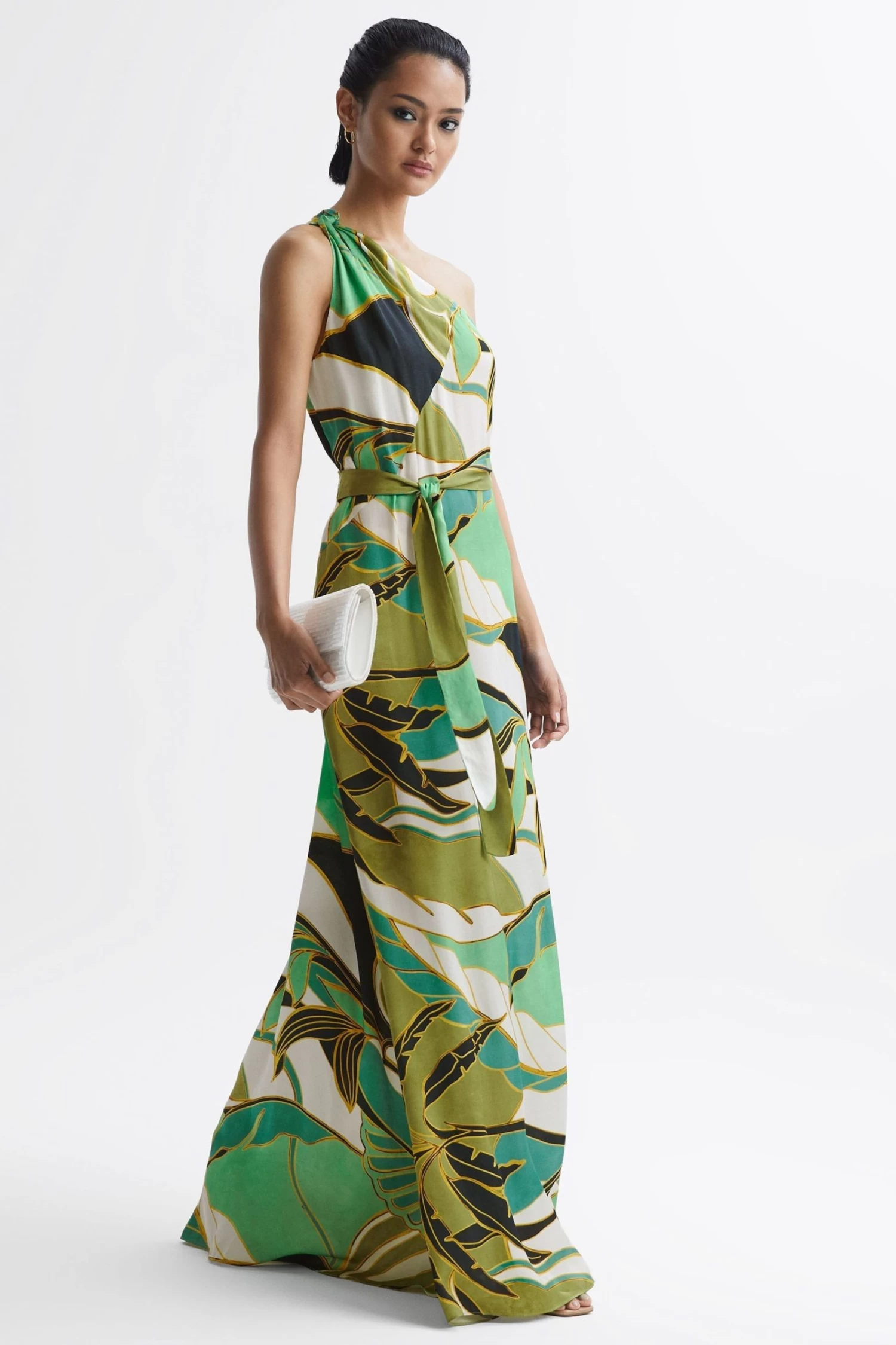 The Tina maxi dress is a jungle-printed piece, crafted from a lightweight fabrication for easy styling. It’s fitted with an off-the-shoulder element and a side slip for feminine appeal. Team with neutral heels for a resort-inspired look, ideal for the special occasions on your calendar. Jungle print. Off-the-shoulder design. Side slip. Maxi length. The model is wearing a size 8 Measurements of model: Height 5ft 9″ / 175cm.