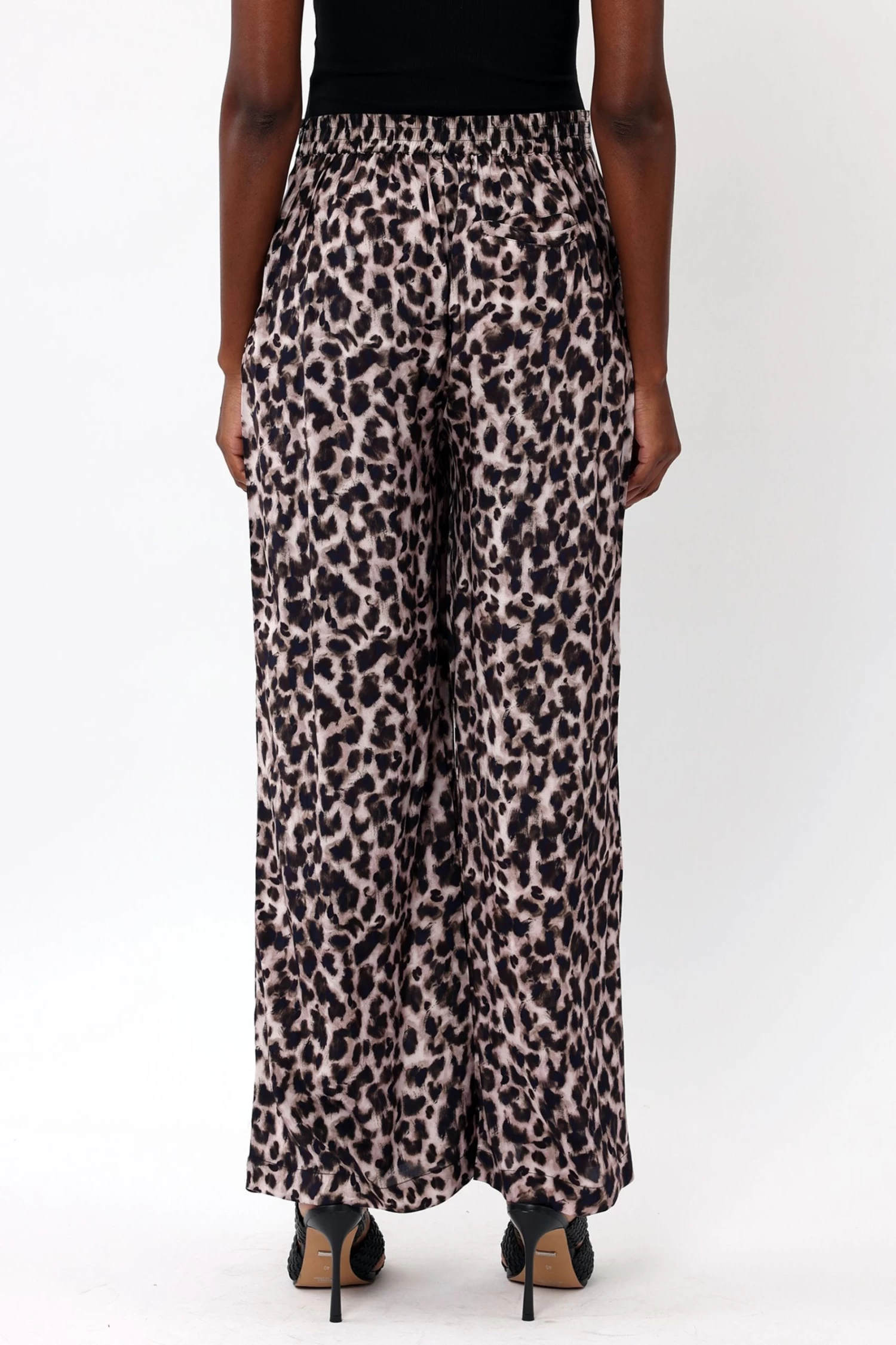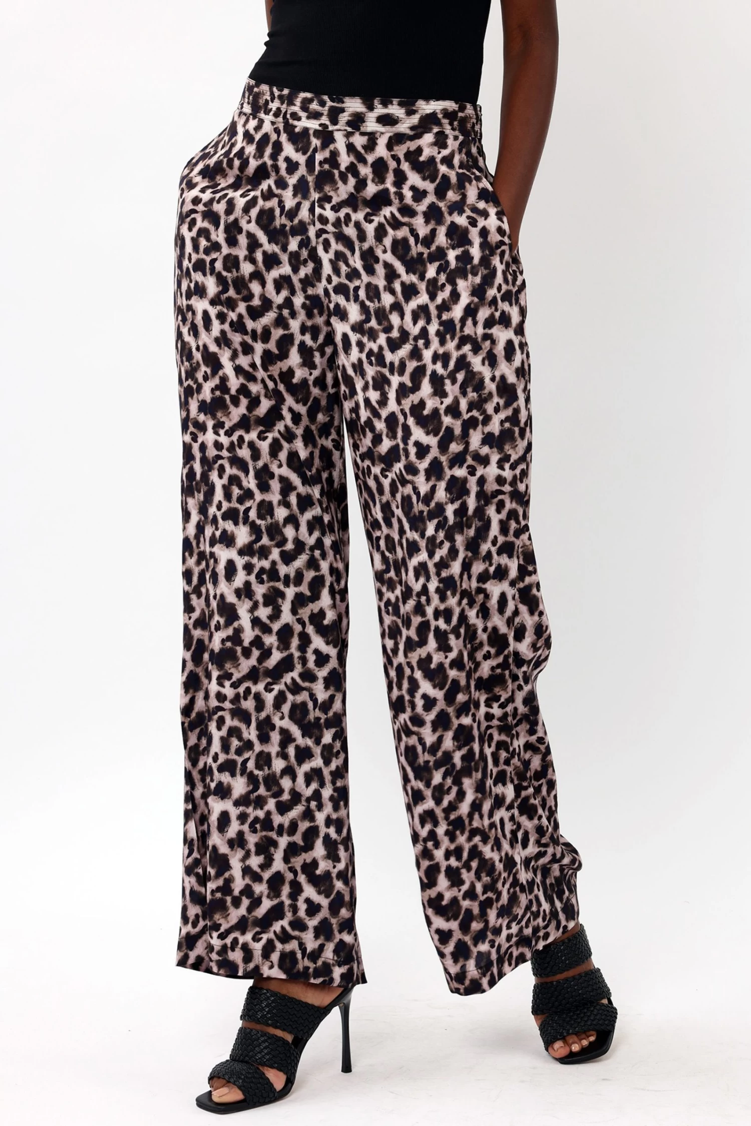 The Charisma pyjama style trousers are a great way to add print to your wardrobe. Available in a selection of hand-painted prints on lightweight viscose fabric. This wide leg style has slanted pockets, an elasticated back waist for easy styling and comfort. Pair it with the matching Creation shirt or the Charisma camisole for the full co-ord or sharpen the look with a fitted vest and blazer. The model is wearing a size 10. This fabric needs a gentle steam or iron before trying on as the shipping might have caused creasing.