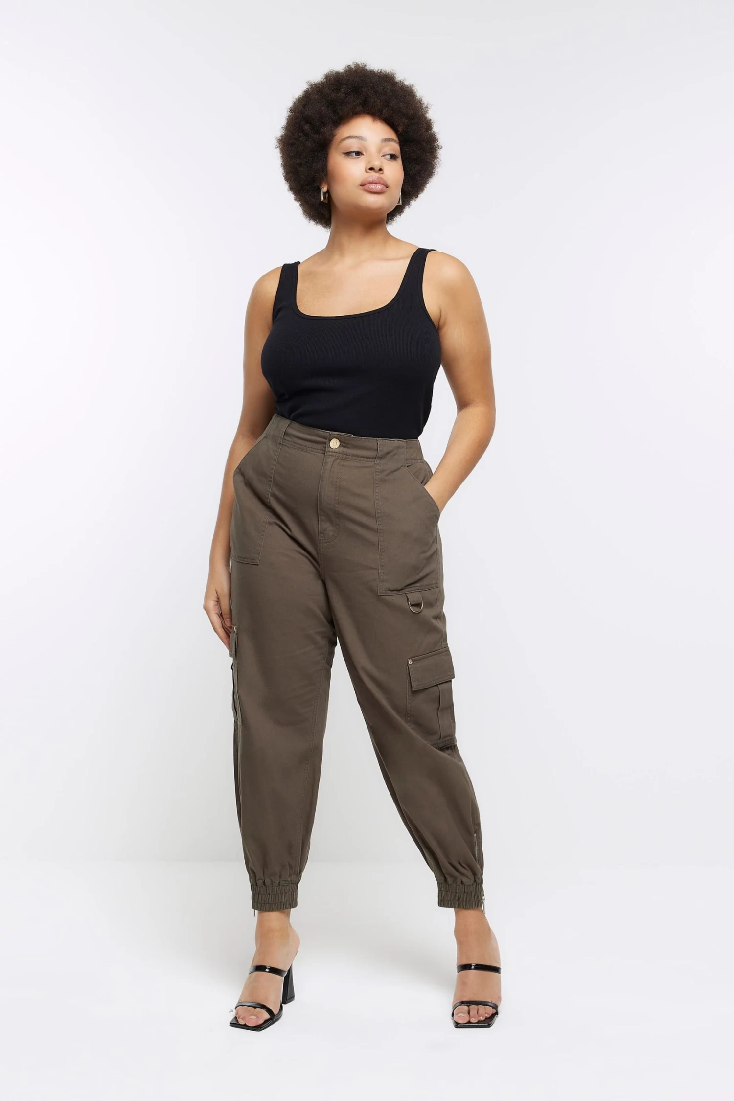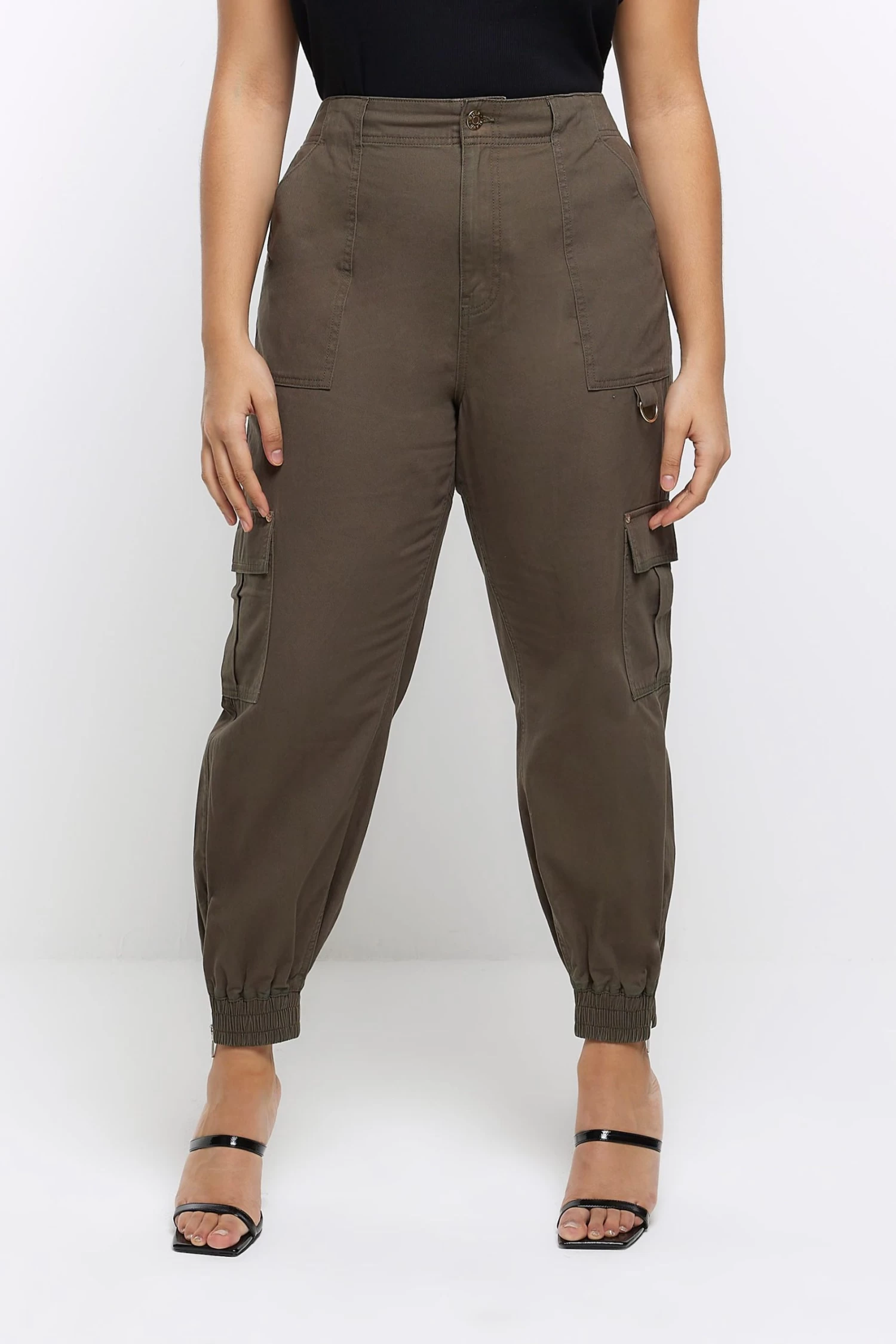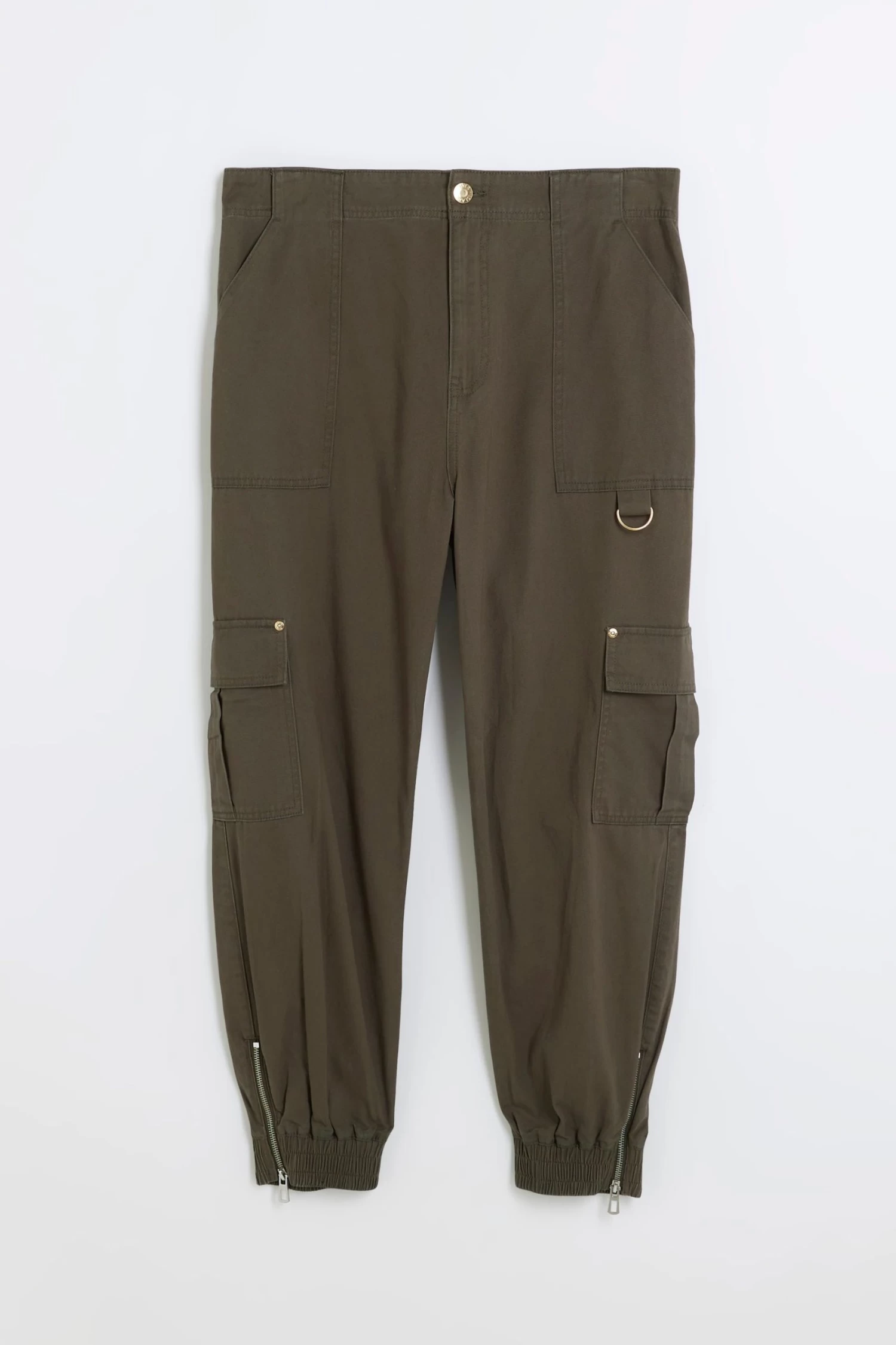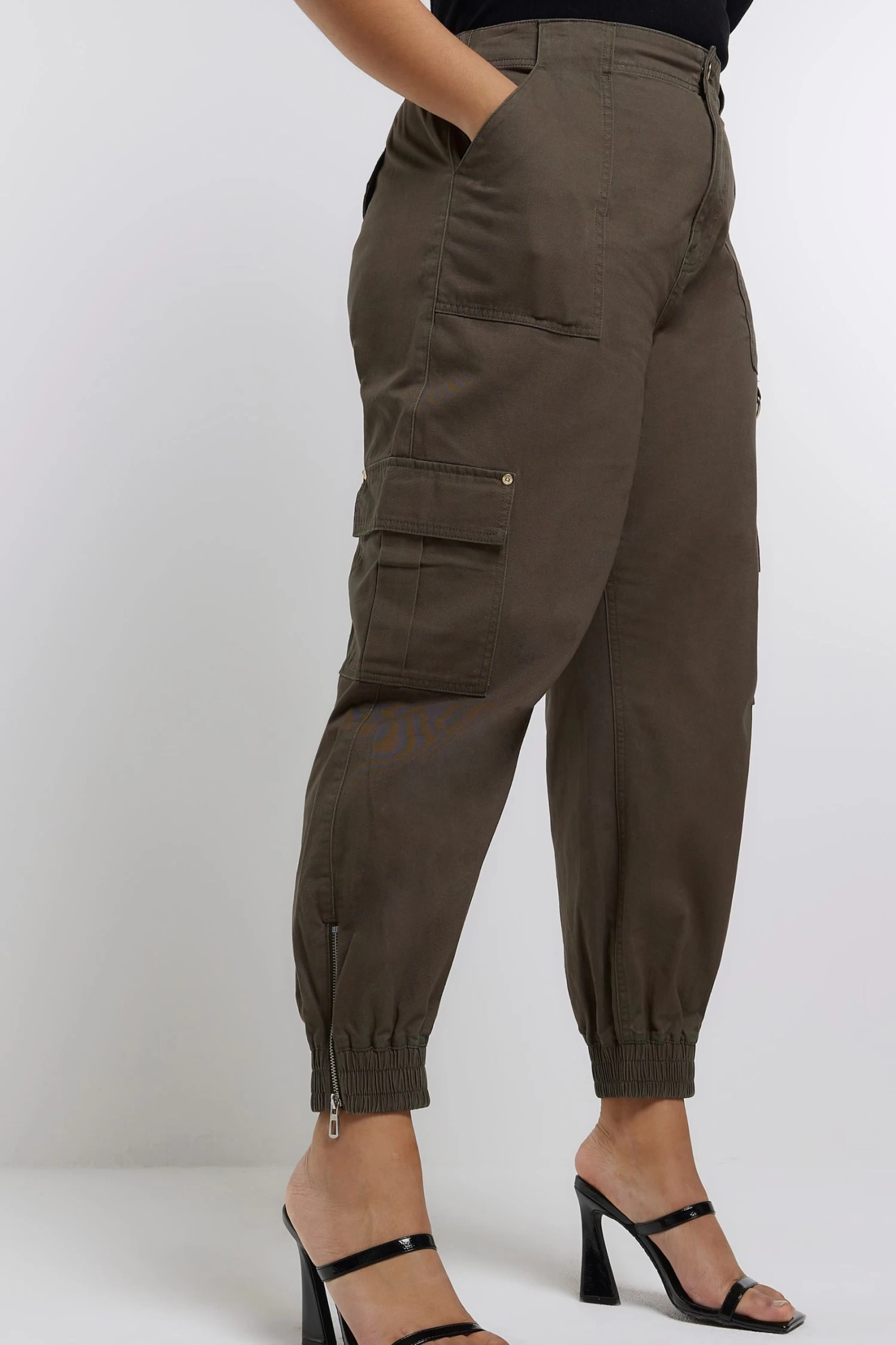 River Island Green Plus Zip Cuff Cargo Trousers