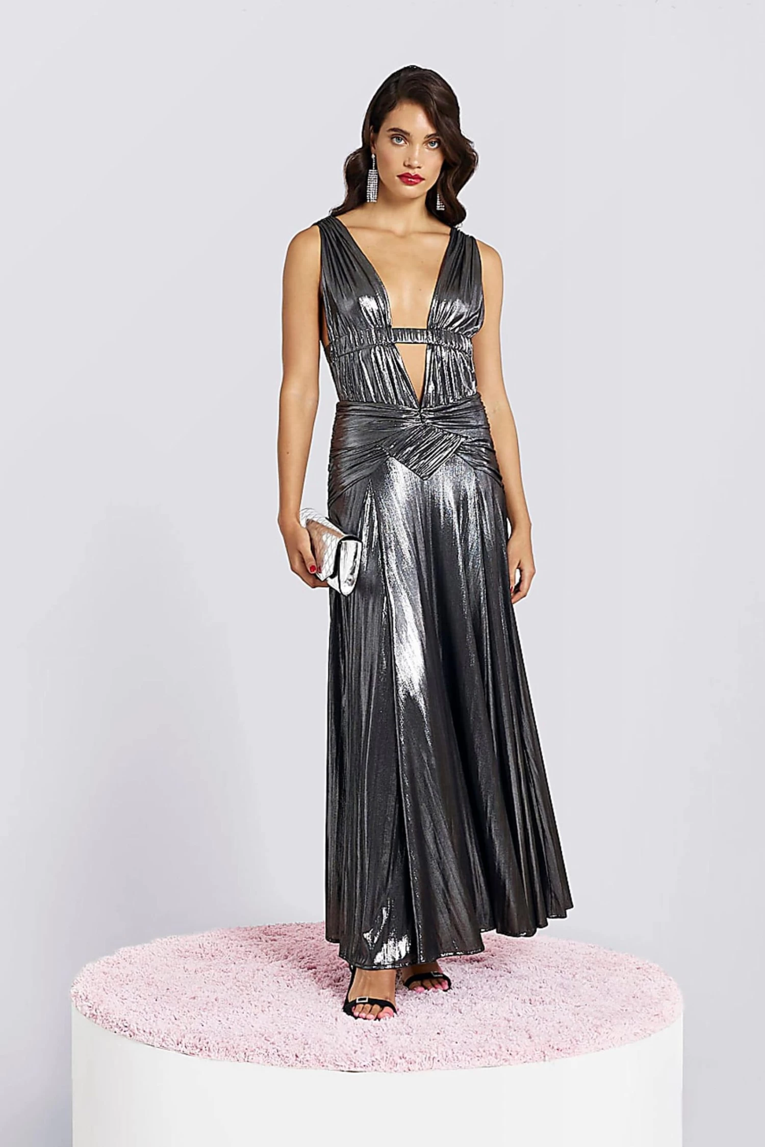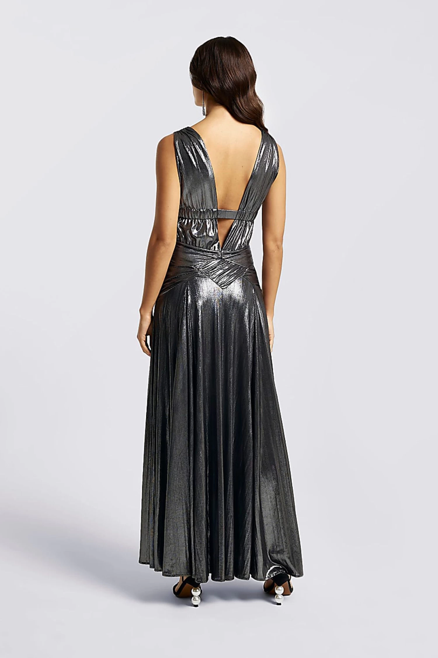 River Island Grey Plunge Drama Maxi Dress