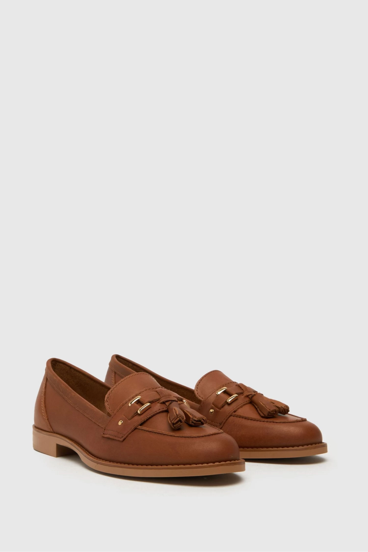 Introducing the Liv Leather Tassel Loafer from schuh! Ready to get you suited and booted for any occasion this season the versatile tan colourway allows this fit to be dressed up or down. Tassel detailing and golden accents complete the look.