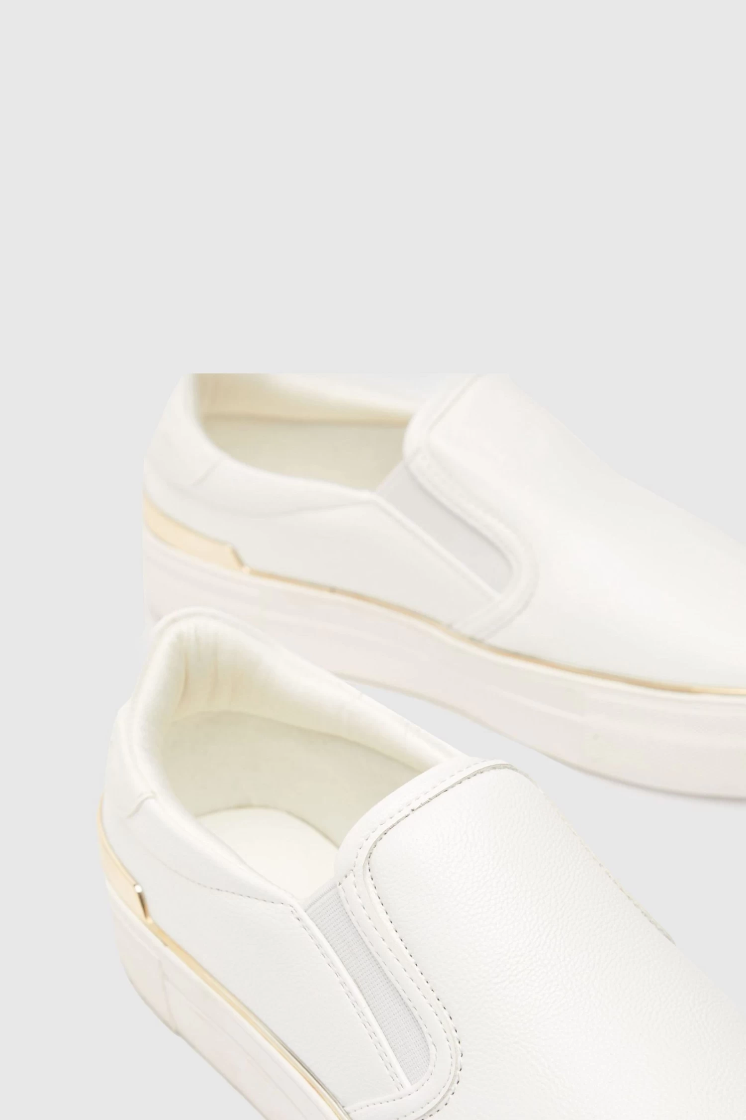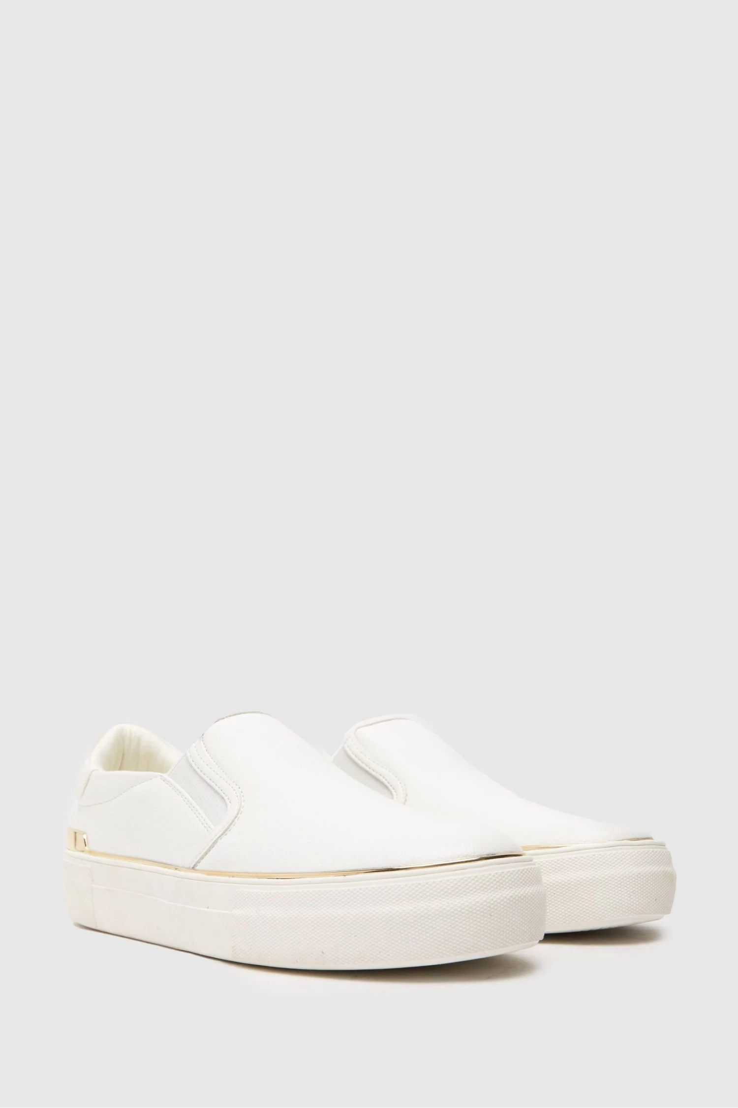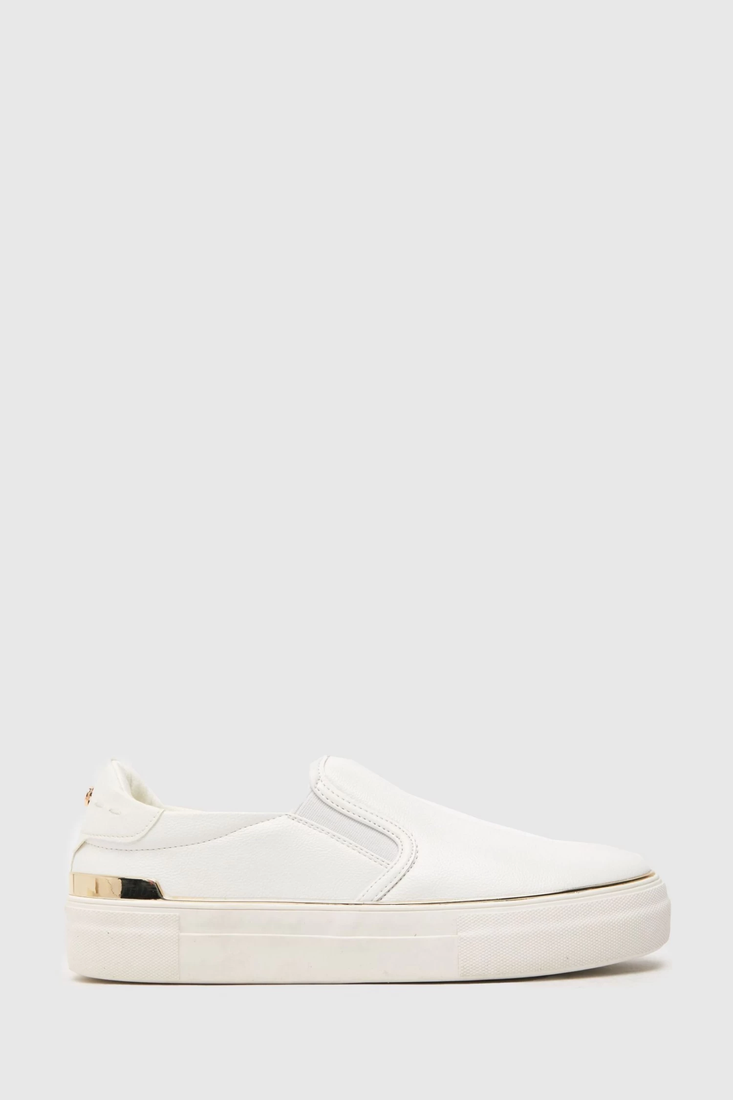 The Nora Hardware Slip On trainer arrives from schuh! A versatile silhouette, fit for your everyday rotation. Boasting a white man made upper and a chunky rubber sole. Slip on style makes these an easy fit with gold detailing completing the look.