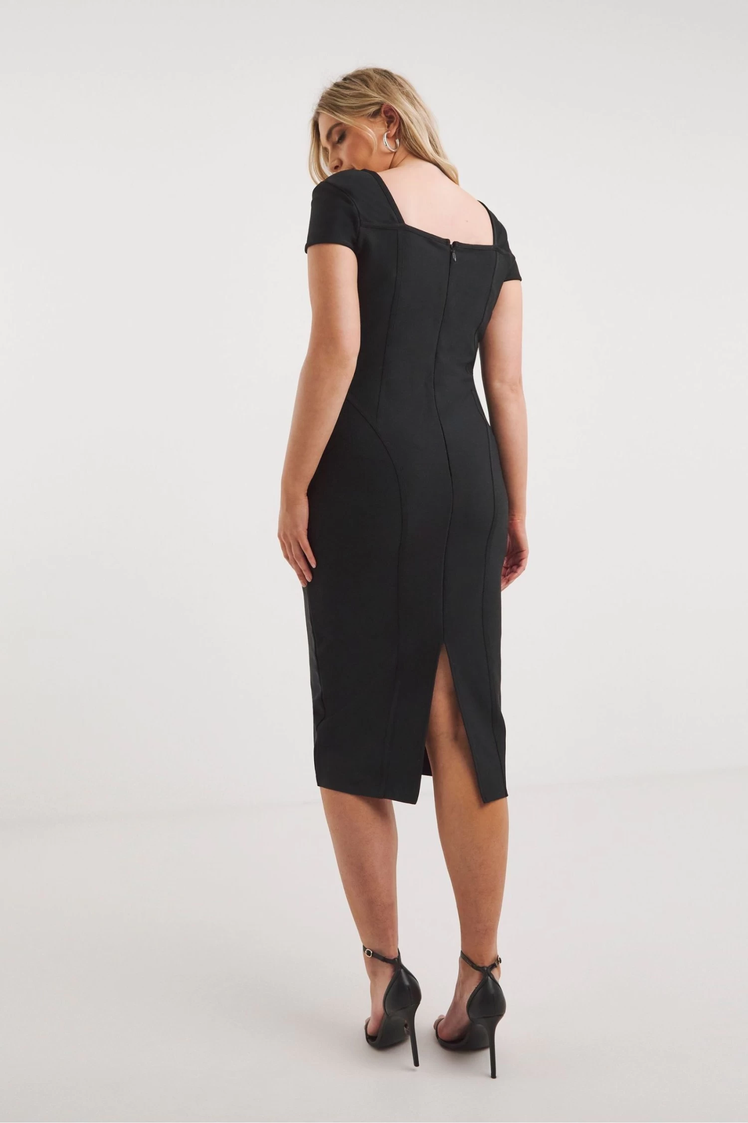 Feel amazing in our Simply Contour bandage bodycon midi dress. Carefully designed to fit your body, this dress features a super comfortable stretch bandage fabric which creates a beautiful silhouette. Its contouring seam details are placed specifically to frame your body, sweetheart neckline and soft cap sleeves all help to make you feel amazing. Simply pair it with your favourite heels for any occasion. Available in Black & Blue Grey.