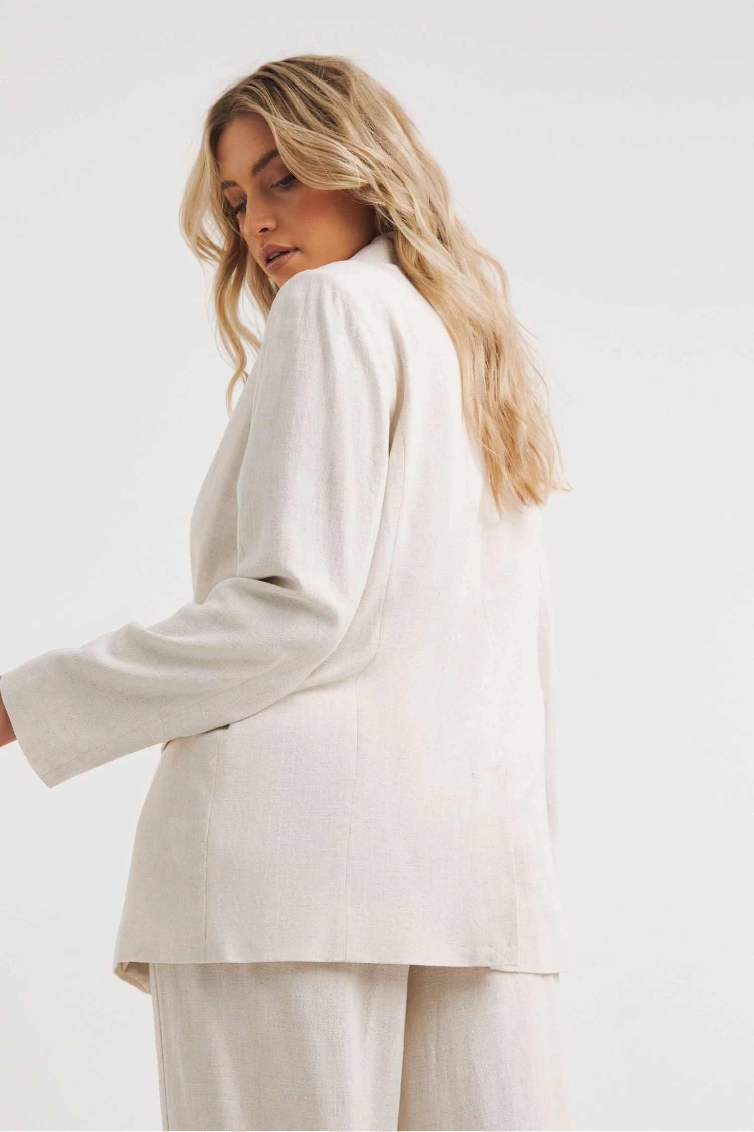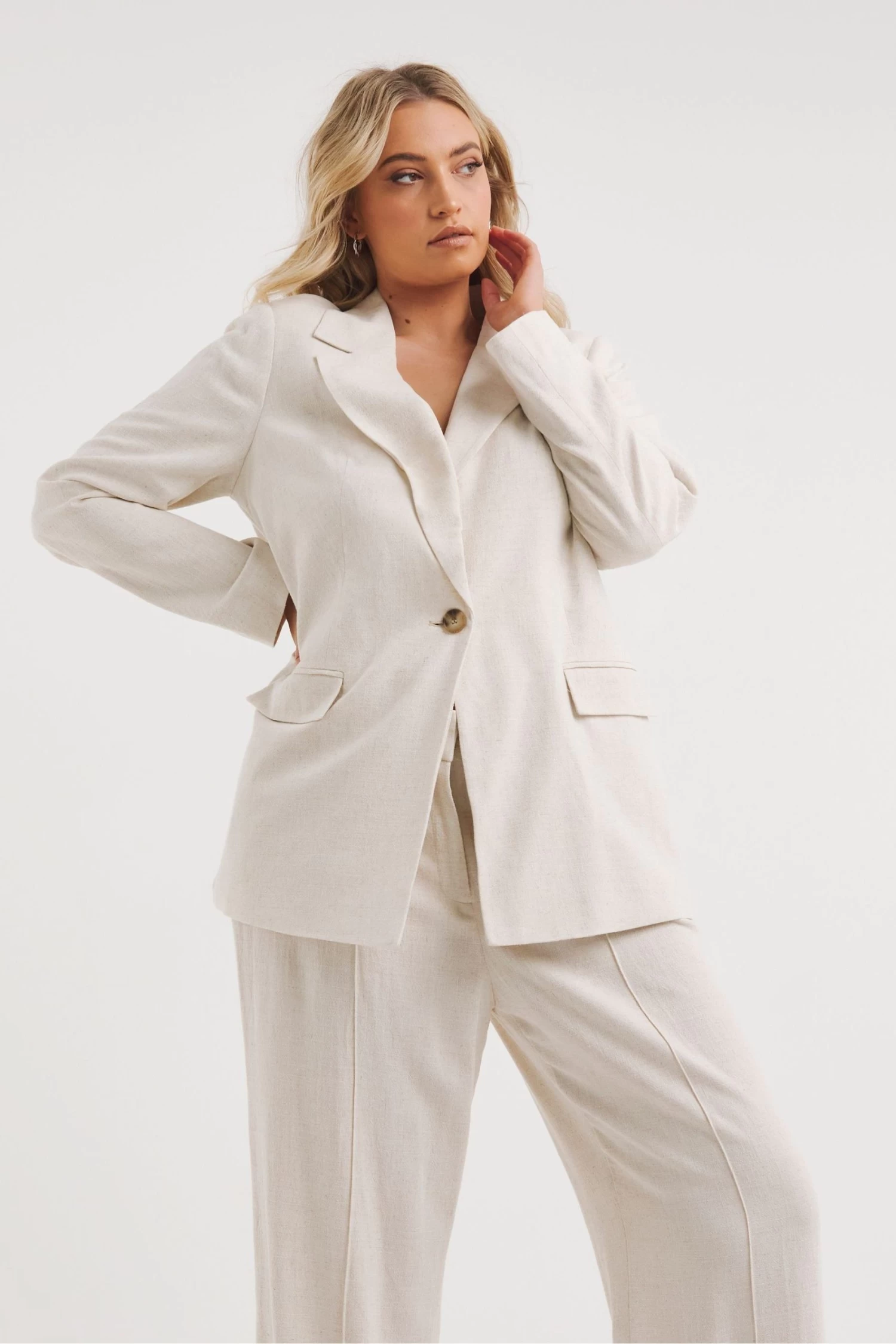 The perfect co ord to add a hint of neutral to your wardrobe this season. Feel fabulous in this single-breasted lightweight linen blazer available in stone with matching wide leg trousers. Pair with the matching trousers, heels and your favourite bag for an effortless evening or brunch look or switch to jeans and trainers for a more casual day time outfit.