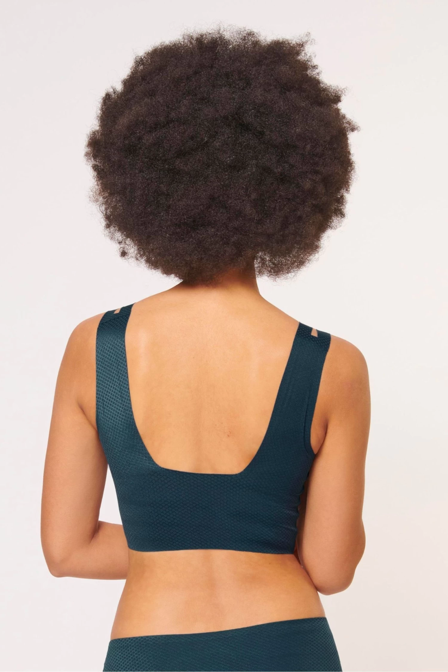 Our new ZERO Feel Flow series delivers the unfeelable feeling of ZERO Feel with a fresh sporty edge. Made from ultra-soft, stretchy – and sustainable microfibre in contemporary cuts and striking tones, these stylish athleisure-inspired basics are perfect for lounging, working out or wearing out and about. Because true comfort has no limits. Perfect for work, rest or play, this ZERO Feel Flow crop top is made from soft, diamond-textured microfibre with 360-degree stretch for total freedom of movement and comfort. Free from seams, wires and labels for a second skin feel, it features a square neckline and double cut-out straps for a modern, sporty look. Removable pads add shape and light support, allowing you to wear it your way. Team it with the matching leggings, or mix and match with your favourite loungewear.