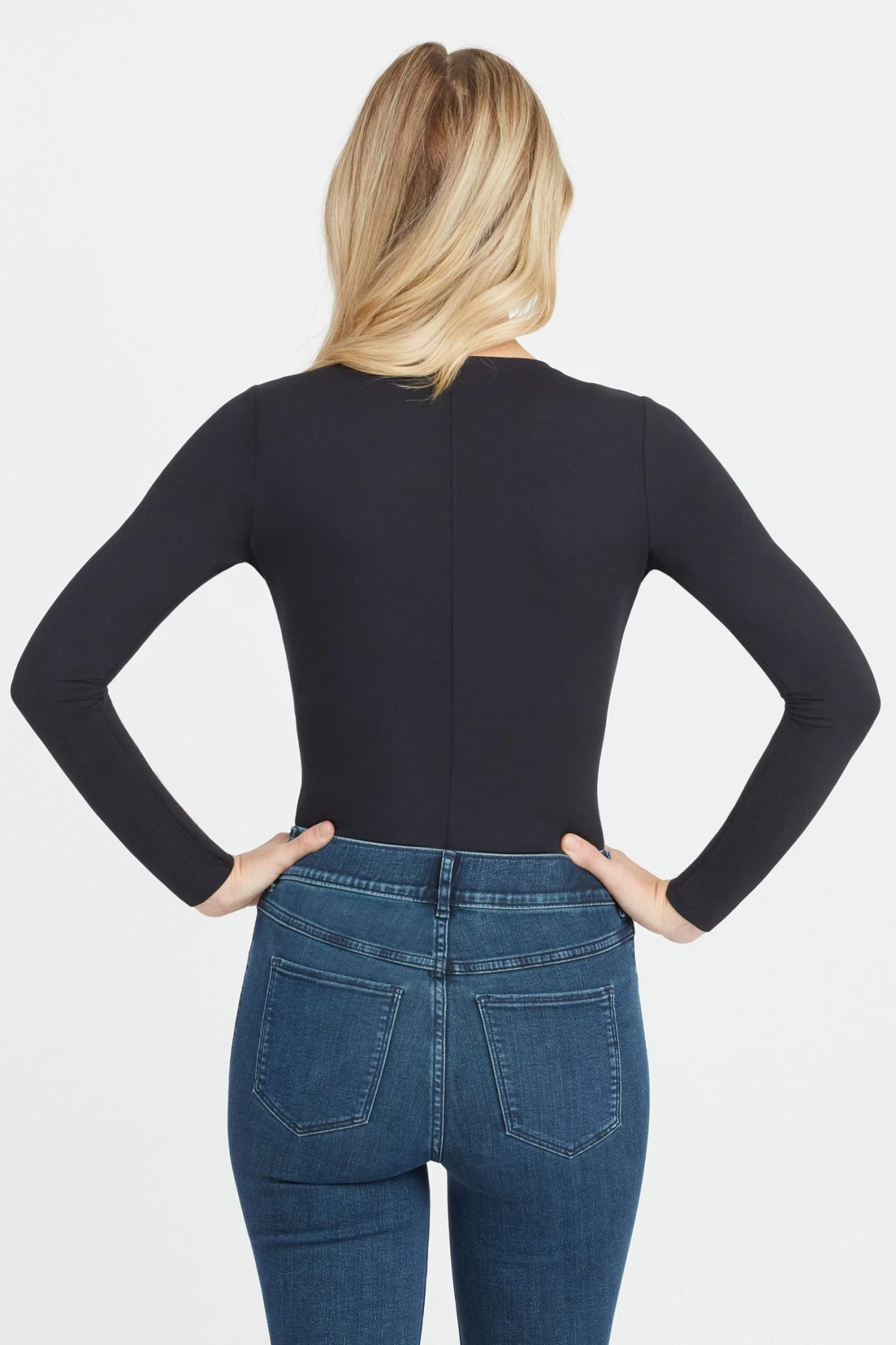 The Suit Yourself V-neck Bodysuit is a super-comfortable, modern apparel bodysuit, it pairs perfectly with jeans, leggings…you name it. Featuring a sleek V-neck detail, what makes it so special? This bodysuit is designed with supersoft and all-over smoothing fabric. Adding a chic layer to your everyday wardrobe essentials! Designed with soft fabric that provides all-over smoothing, thong back and double snap closure for easy on and off.