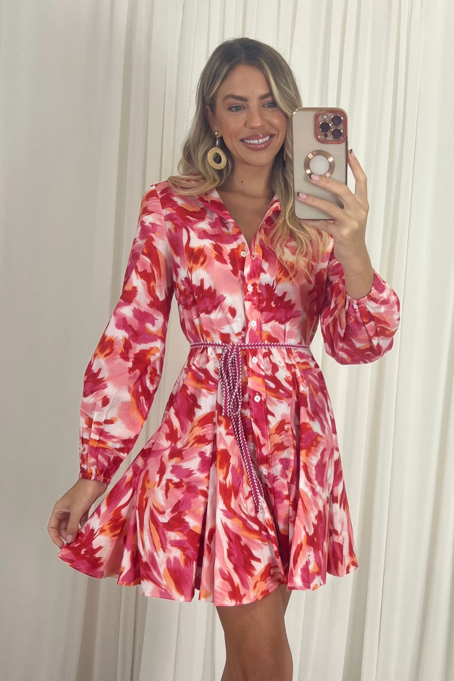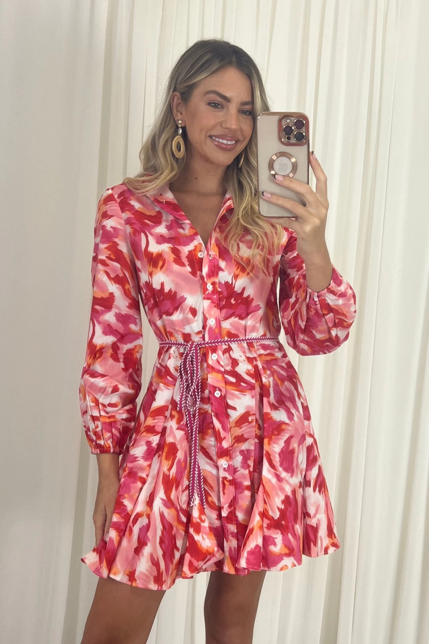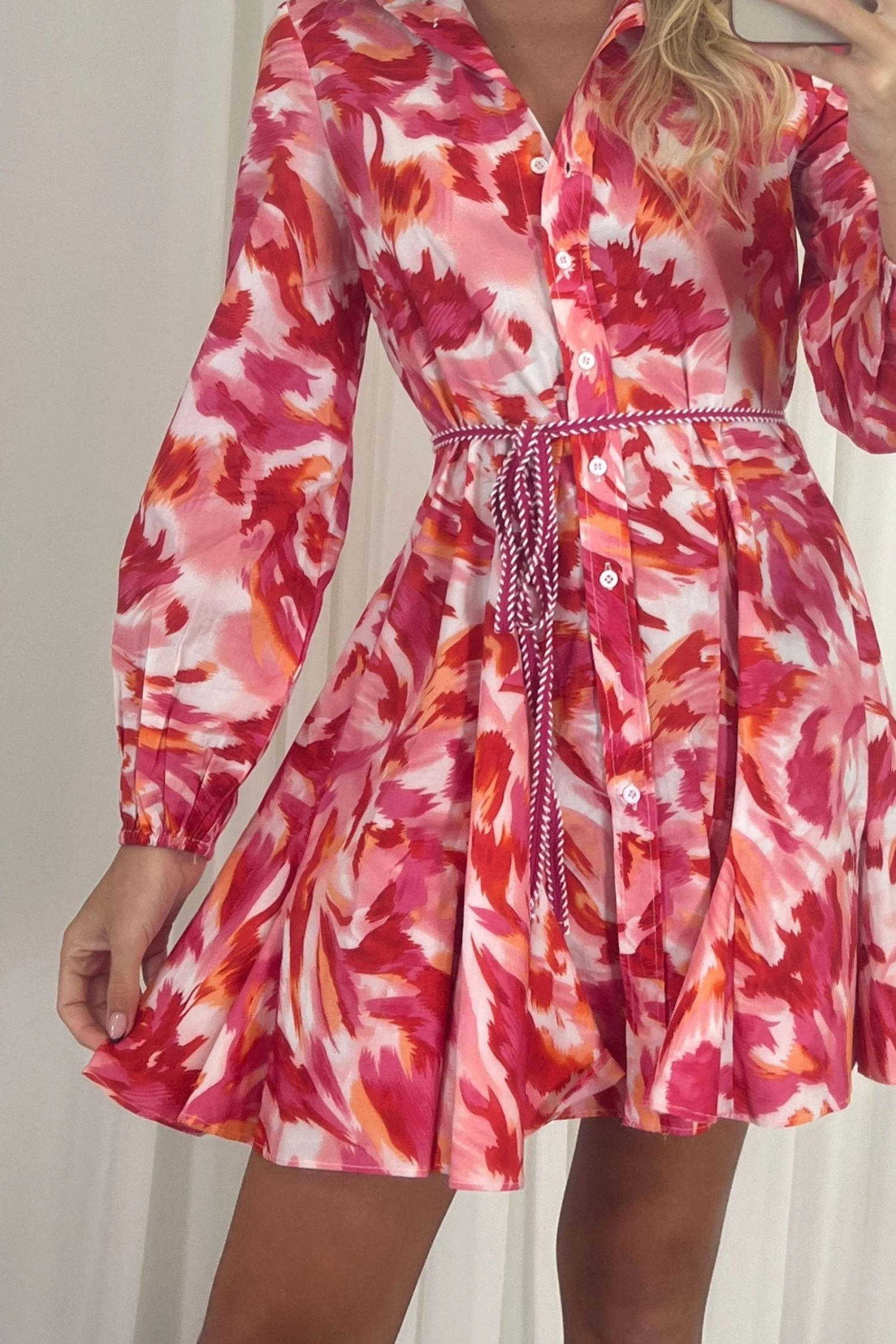 The Myla mini dress is perfect for Spring. With a godet style voluminous skirt, shirt style collar and unique rope detail belt, this dress is on-trend and flatters every body. Model is 5 ft 6 and wears a size 8.