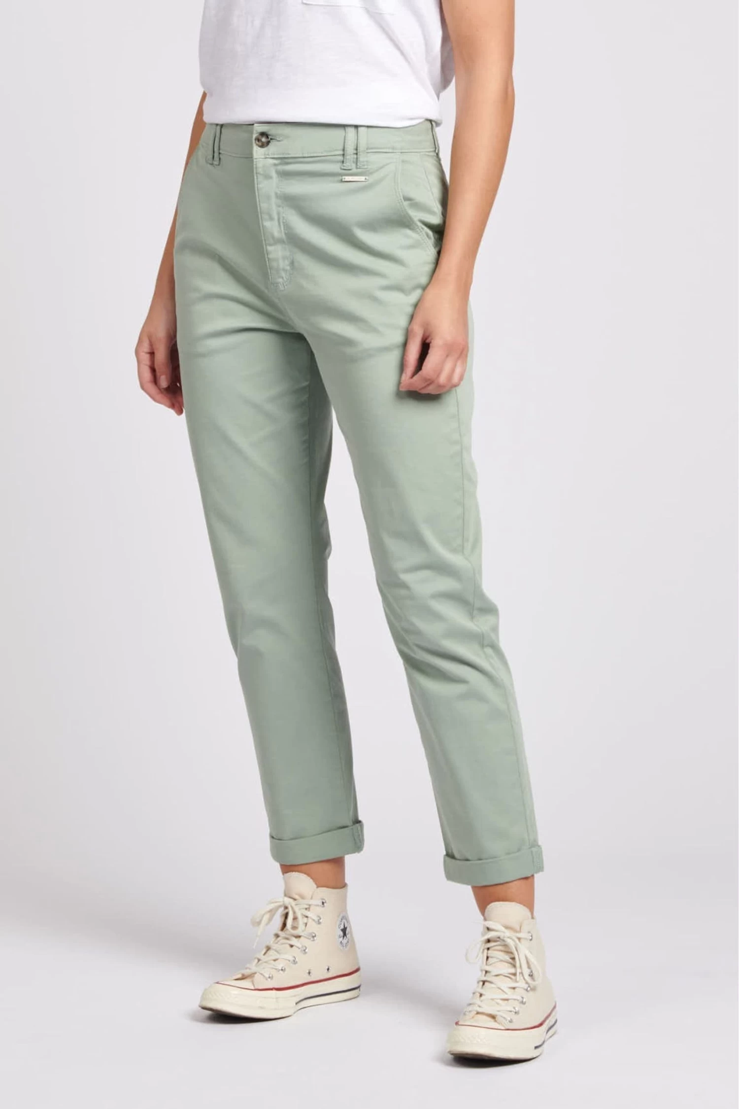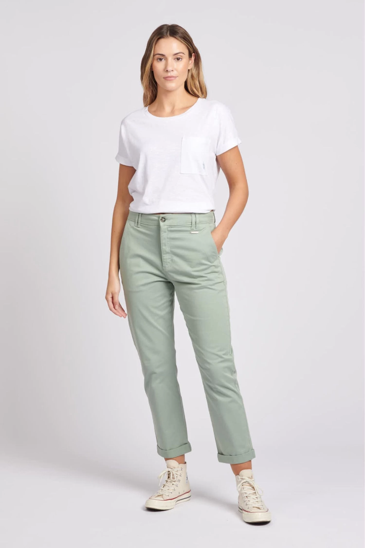 U.S. Polo Assn. Women’s Rolled Hem Chino Trousers are made in a soft, peach-finished fabric for comfort against the skin. Features include double belt loops, branded horn buttons, and the new silver metal USPA tab to add subtle details to a classic trouser shape and give the signature USPA stamp of authenticity.