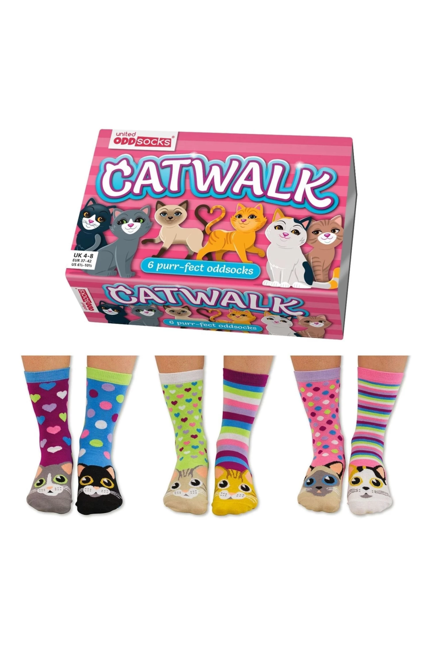 We can’t promise our catwalk socks will give your modelling career a boost, but they’ll certainly make you feel like the cat’s whiskers. Every sock is unique and every pattern is as cute as a fluffy kitten. So with six odd socks to mix and mismatch, you can create 15 different combinations of fancy feline footwork.