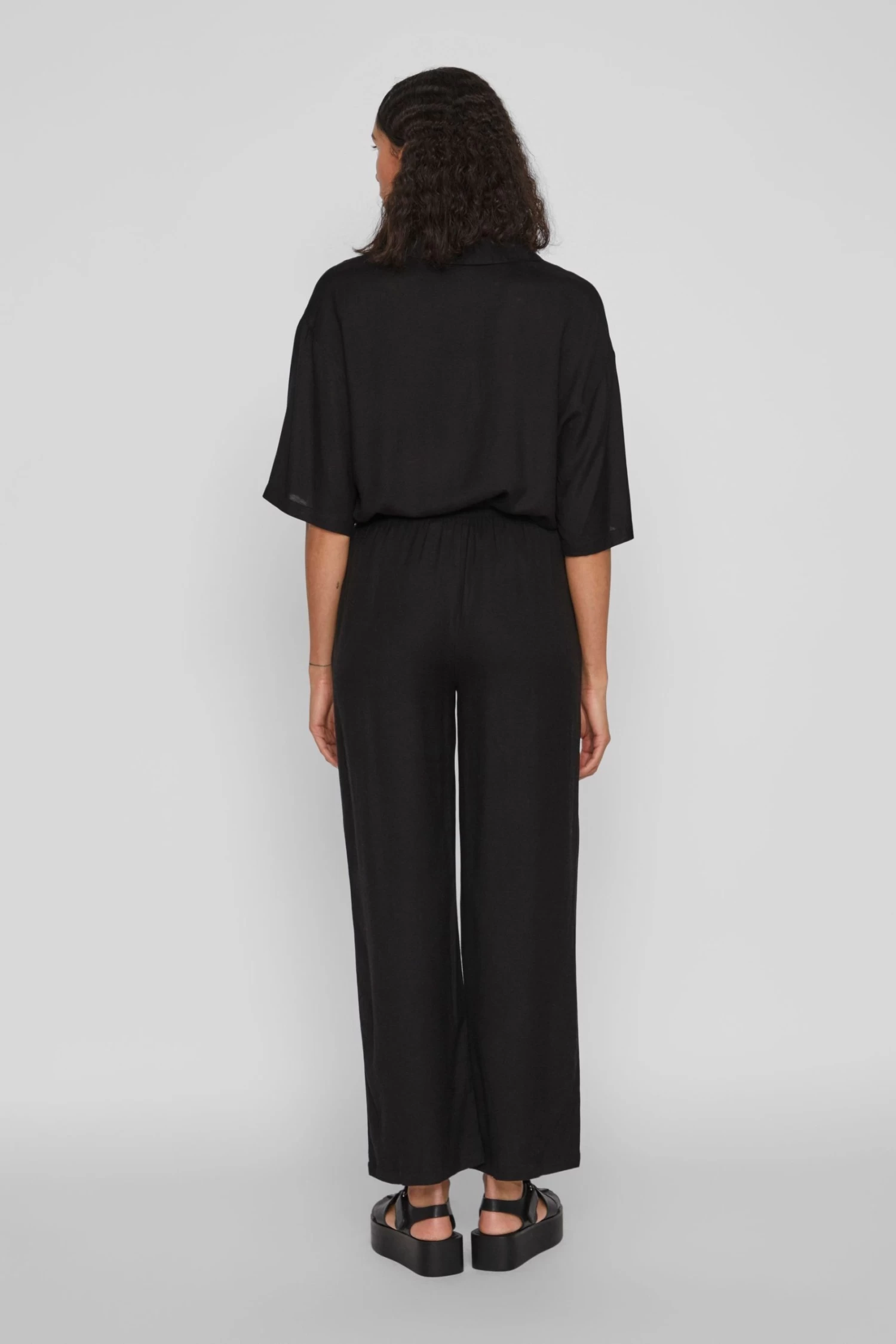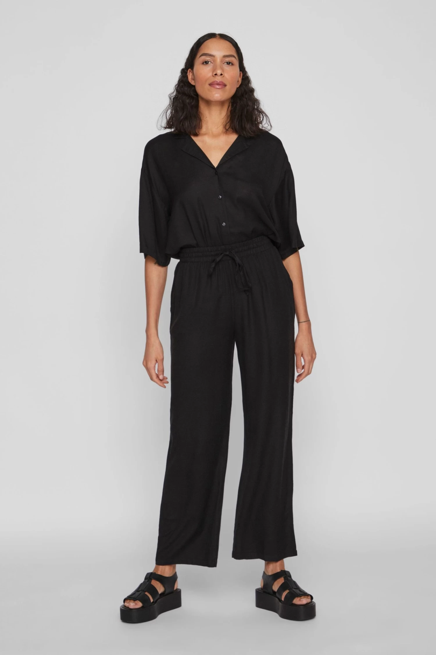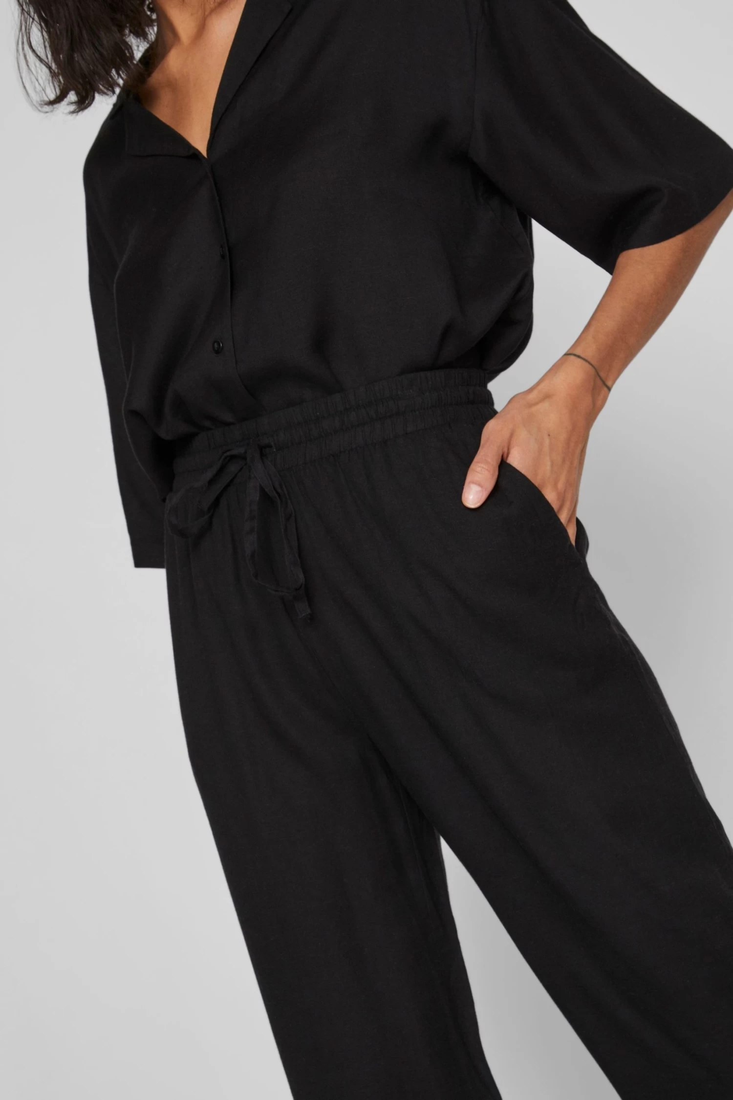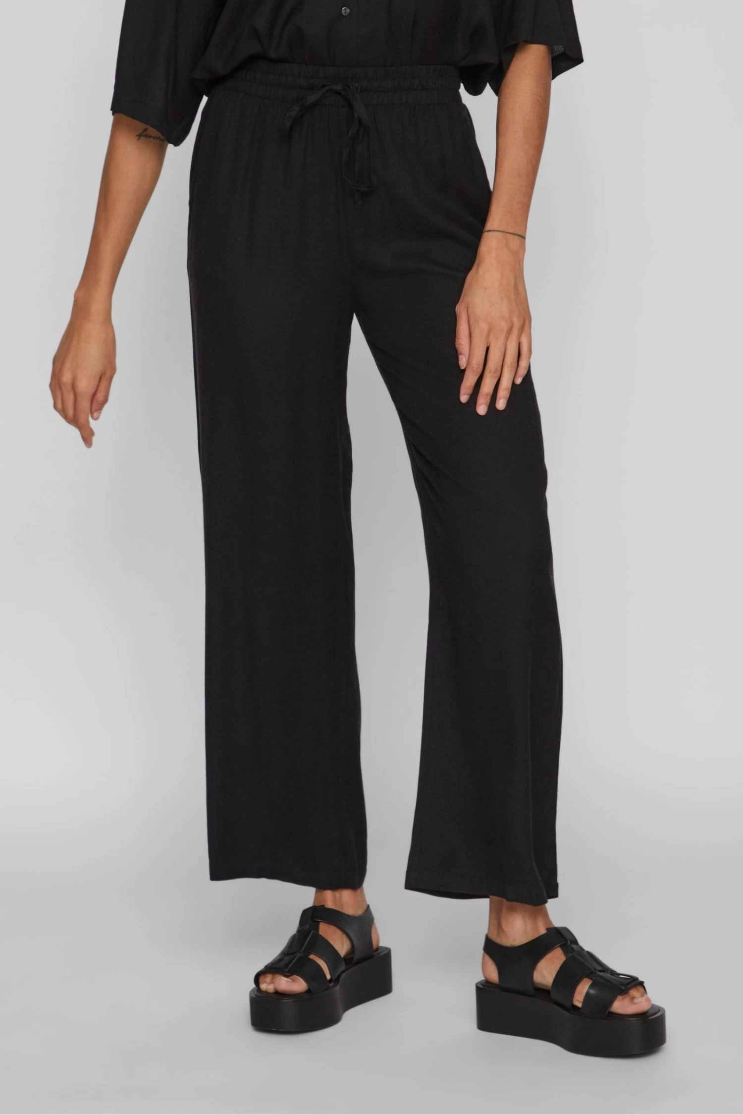 VILA Linen Blend Wide Leg Stretch Waist Trouser