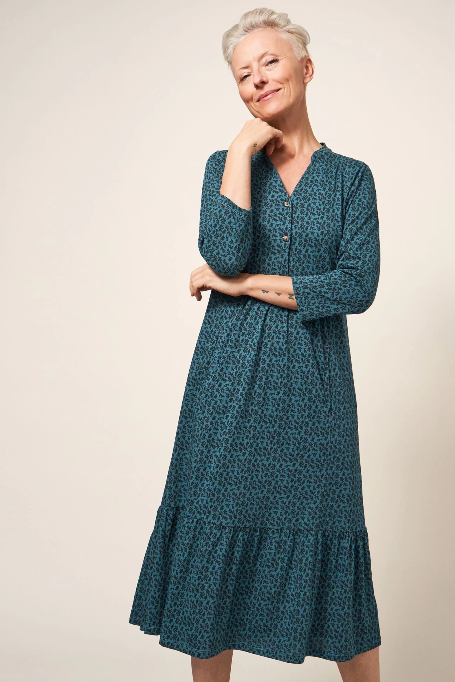 A soft jersey dress that is as comfy as it is stylish. With a subtly tiered skirt, it s easy to dress up for all those brunches you ll (hopefully) be going for.