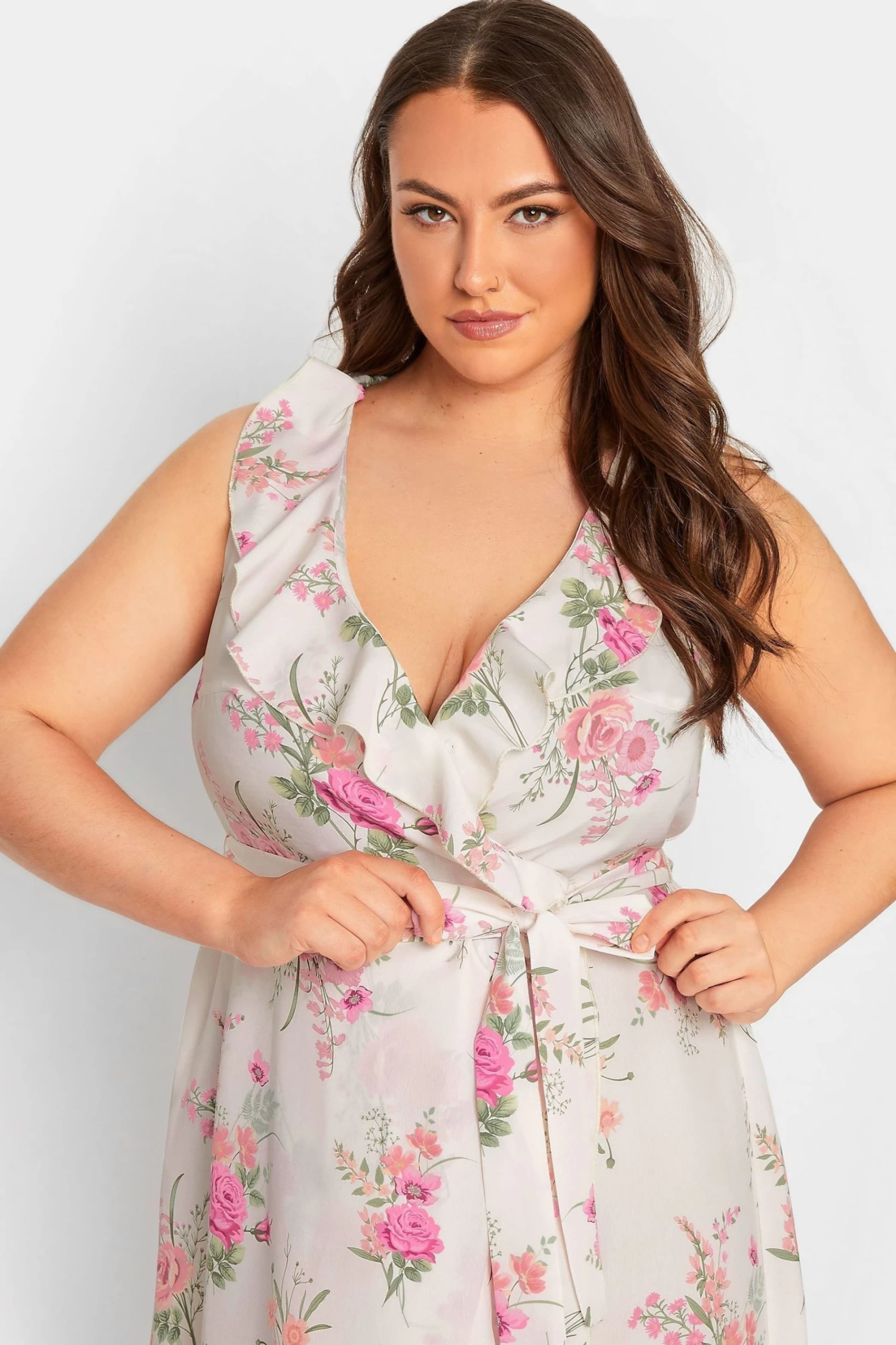 Get ready for your next special occasion in this new-in wrap dress exclusive to Yours London. Made from a comfortable woven fabric it features a v-neckline with double ruffle detailing in a sleeveless design complete at a midi length. Simply style with heels and clutch bag to finish the look. Why We Love It: A pretty print for wedding season.