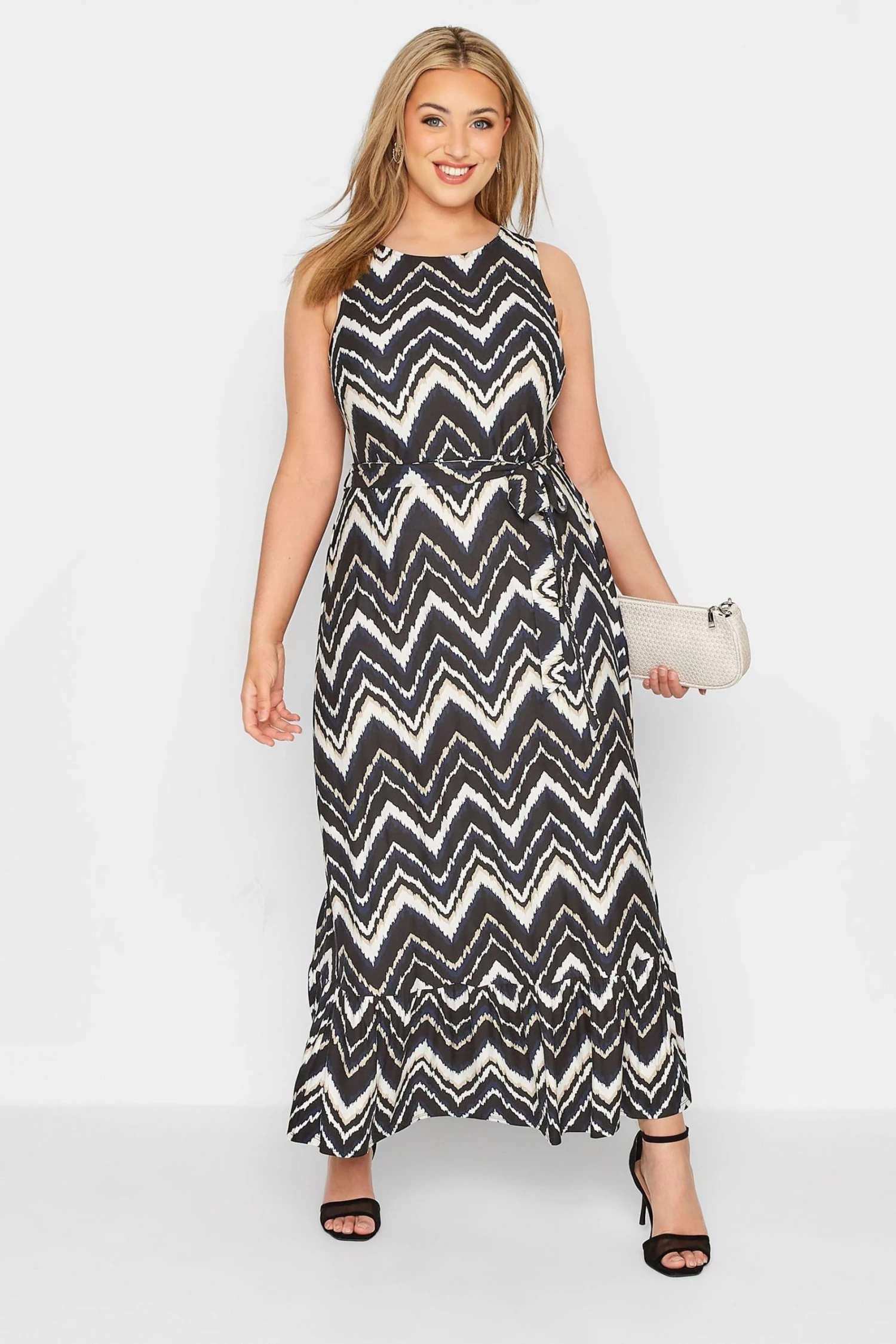 Fashion Notes: Add a new print to your collection for the summer season with this maxi dress exclusive to Yours London. Made from a stretch jersey fabric it features a belted tie waist to show off your curves in a tiered maxi style and is complete in a sleeveless design. Pair with heels and a clutch bag for your next event. Why We Love It: A must-have print for you wardrobe.