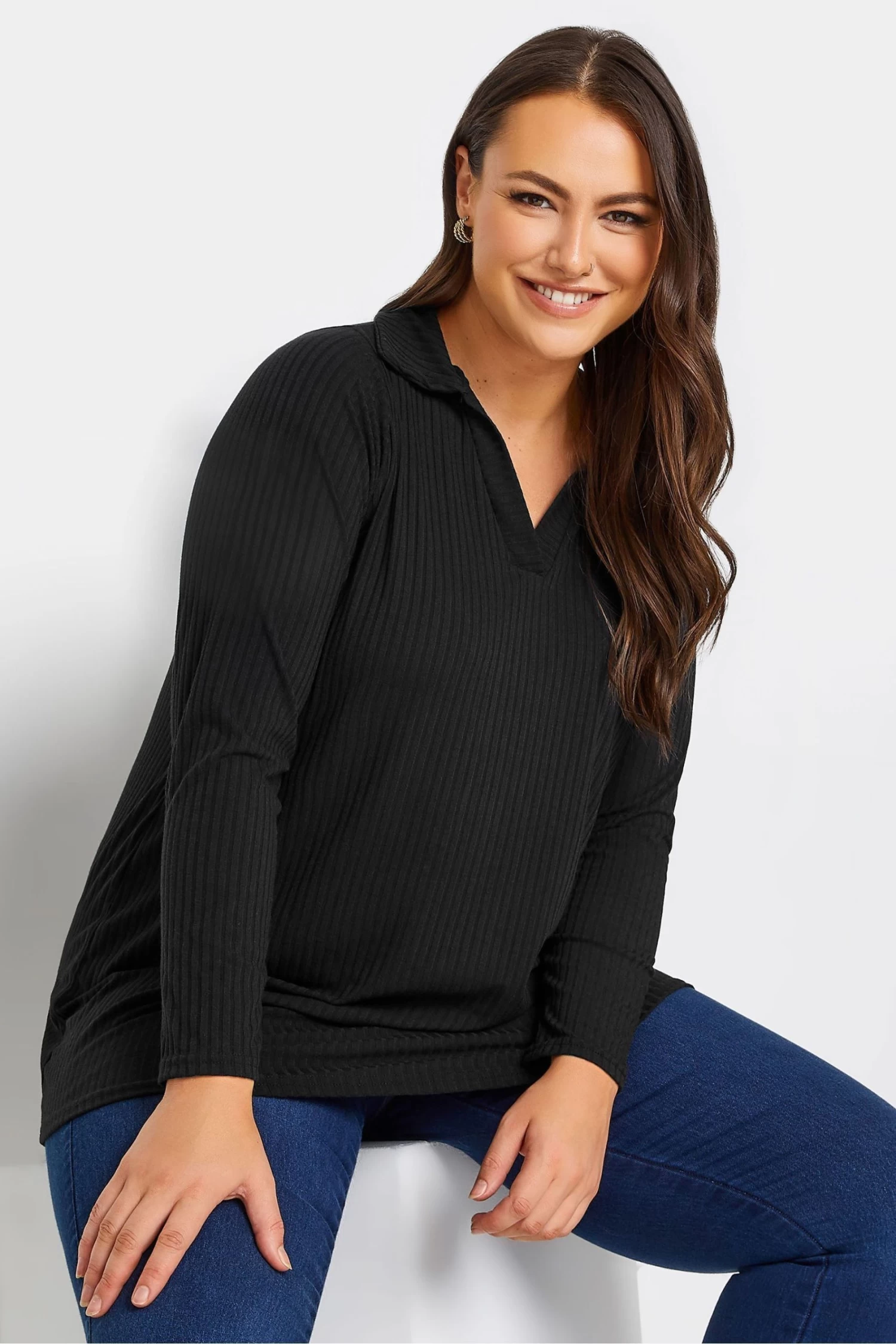 A foundation piece for your casual collection Made from a jersey fabric this top features long sleeves a ribbed style and a v-neck collar. Style with black jeans and black boots for an easy-on-the-go look.Why We Love It:Cosy casual dressing made easy.