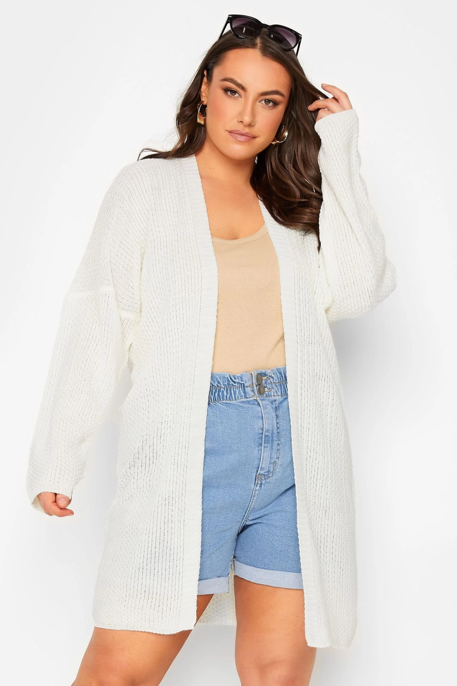 The perfect light layer for Summer. Made from a comfortable knit fabric this cardigan features long sleeves, and a pointelle design. Style with a tee and shorts for a comfortable and cute look!